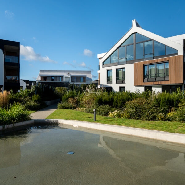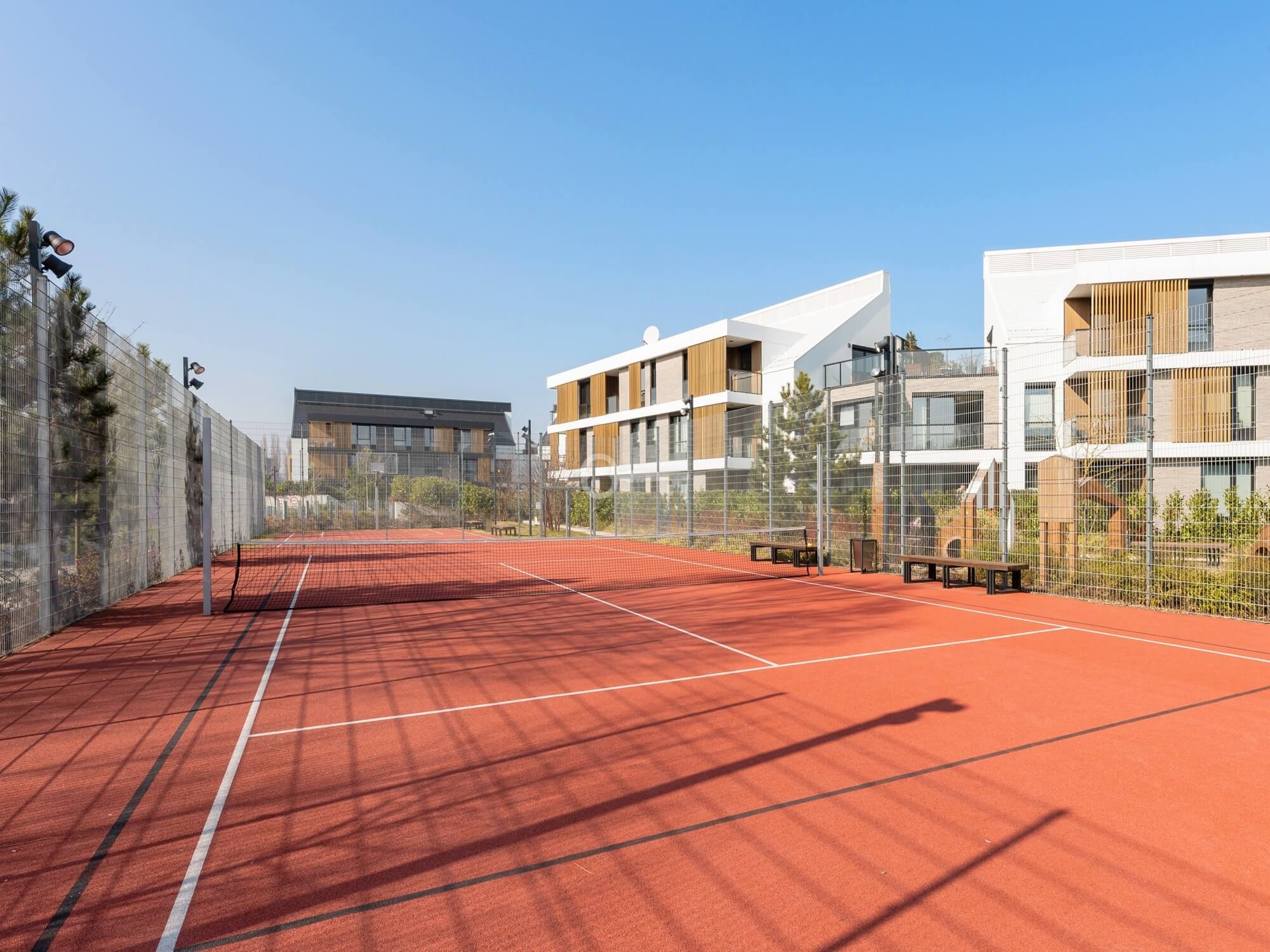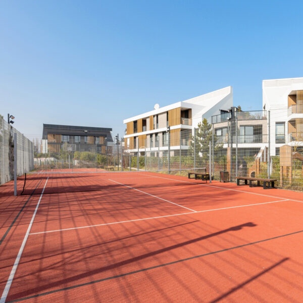 The unique character of the development is enhanced by the shared spaces designed for relaxation. Residents will have access to: an outdoor relaxation zone, a tennis court, a multifunctional sports field, numerous areas with ponds and diverse vegetation, all composed to create a natural space for rest.