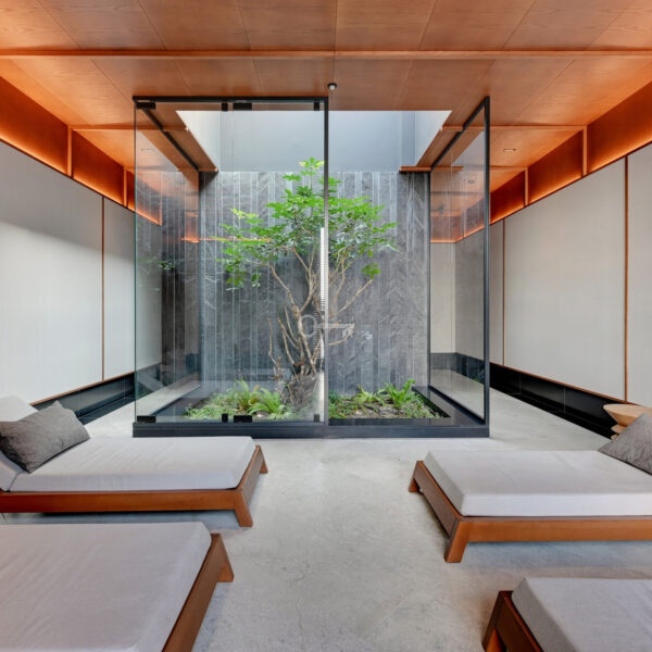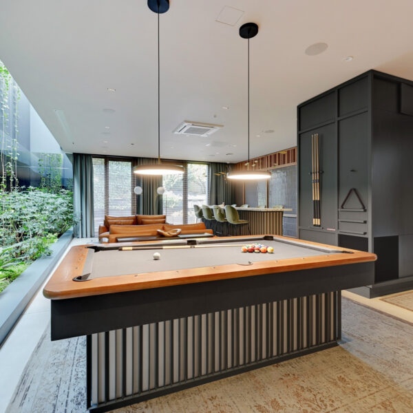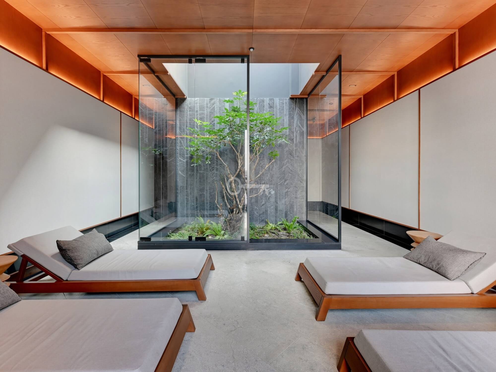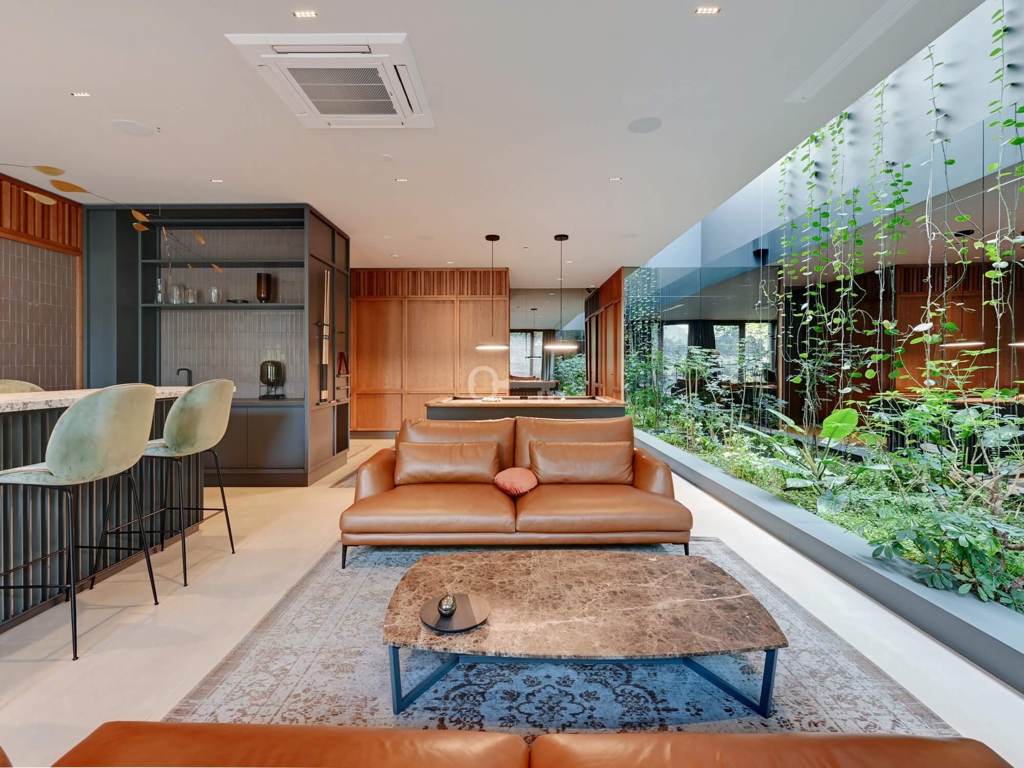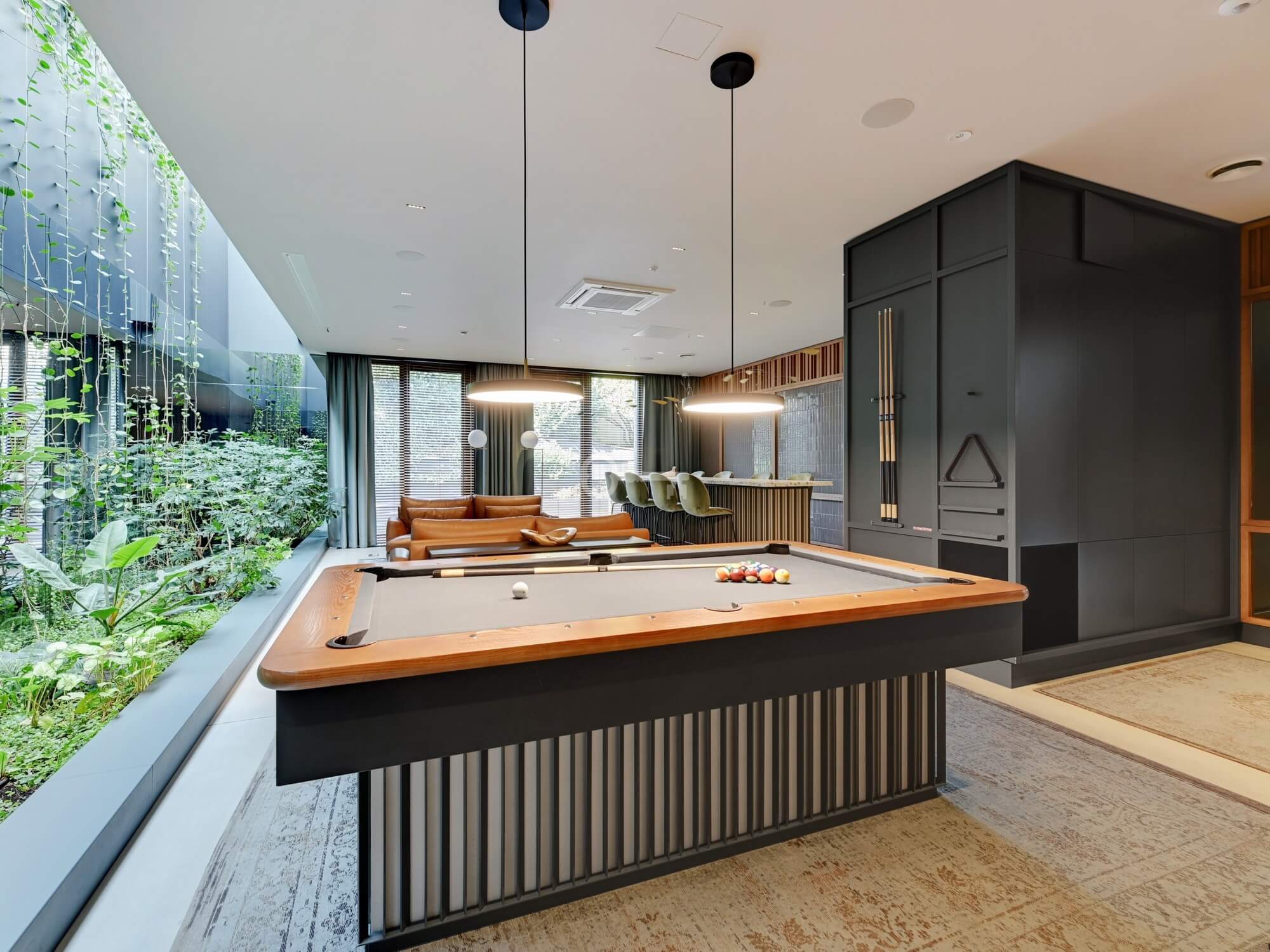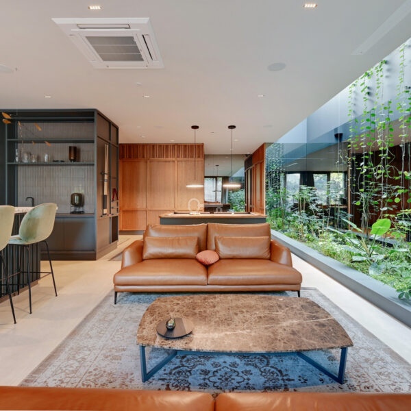 The layout of the estate follows the rhythm of a flowing river, ensuring every resident a unique view. Large glazing and enlarged windows allow sunlight to flood the interiors and offer scenic views.
