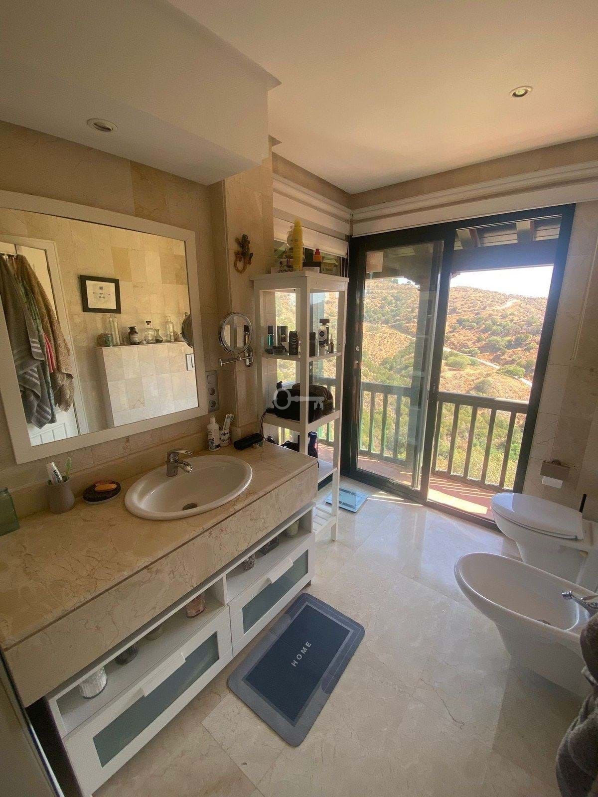 One level up you will find the further 2 double bedrooms both with private en-suites and private balconies. The master bedroom has a walk in wardrobe and an extra room attached that the owner has made his office (used to be an open terrace, the owner enclosed to make an office but it could be opened again.