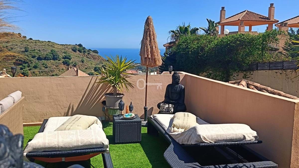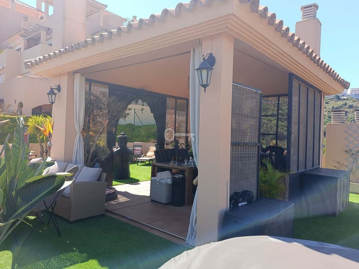 Stunning 3 bedroom penthouse with sea views located in the upper part of Calahonda, in a very quiet residential area surrounded by mountains. In this lovely penthouse you can enjoy all day with your family and friends, incredible terraces of 111 m2 and 65 m2 on the upper floor, the penthouse is distributed over two floors, on the main floor you will find tree the bedrooms, a brand new kitchen, and three bathrooms, direct access from the house to the first terrace and up you get to the second terrace covered with dining room, barbecue and sun loungers where you can enjoy many sunny days on the the Costa del Sol. The home is intelligently connected with voice and remote control, well situated due to the easy access by highway, 20 minutes from the airport. The complex has a swimming pool, elevator with access to the underground parking and the storage room.