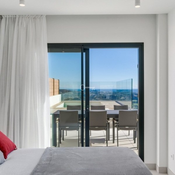 To the left of the living room is the main bedroom, a true refuge that has en-suite walk-through wardrobes and private bathroom, sea views and direct access to the terrace. It is the perfect place to disconnect and enjoy the tranquility.