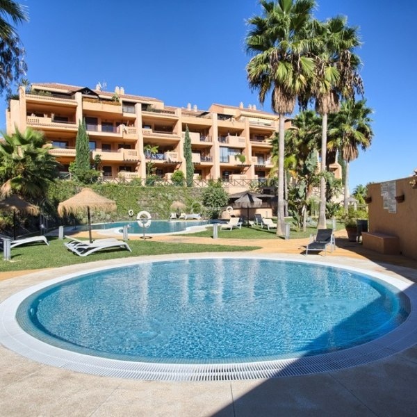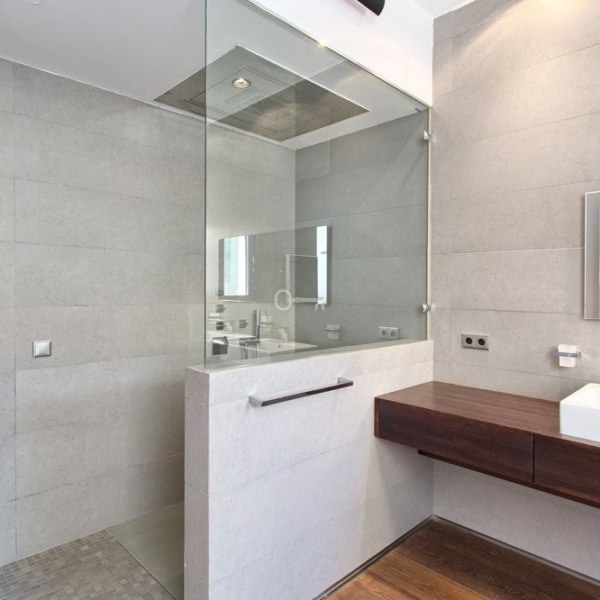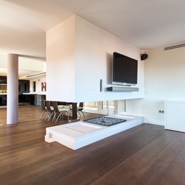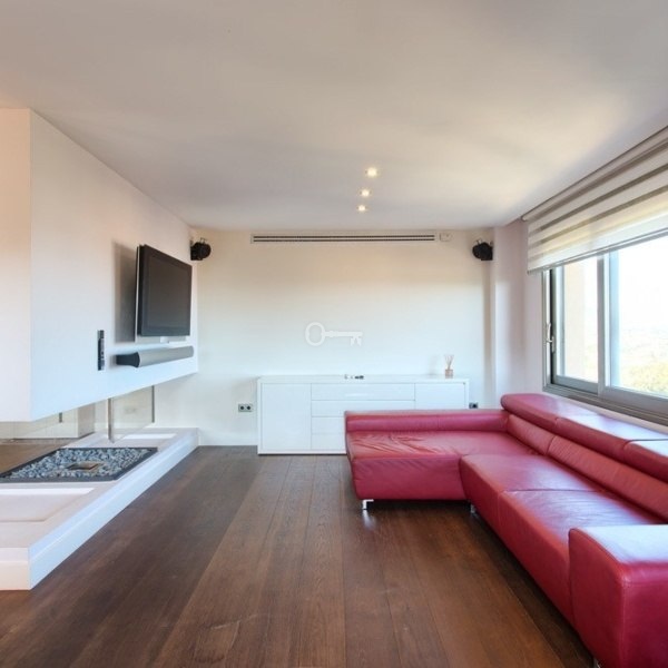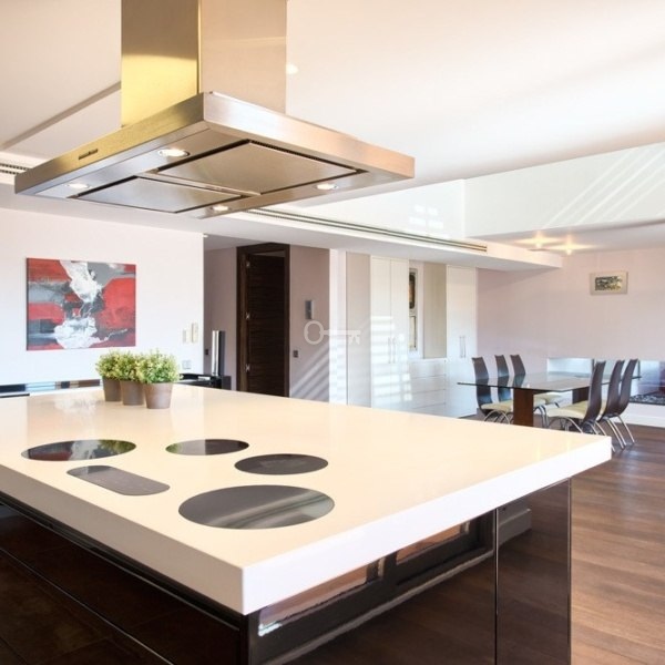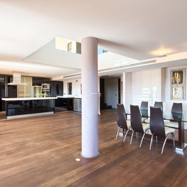 Being a duplex penthouse the four bedrooms all en-suite are spread over 2 floors there is an elevator to both floors, a guest cloakroom on the lower level, the main living area has an open fireplace and is very spacious with natural from the large windows all open on to the partly covered terrace. The kitchen fully equipped with all Bosh, Miele and Siemens appliances.