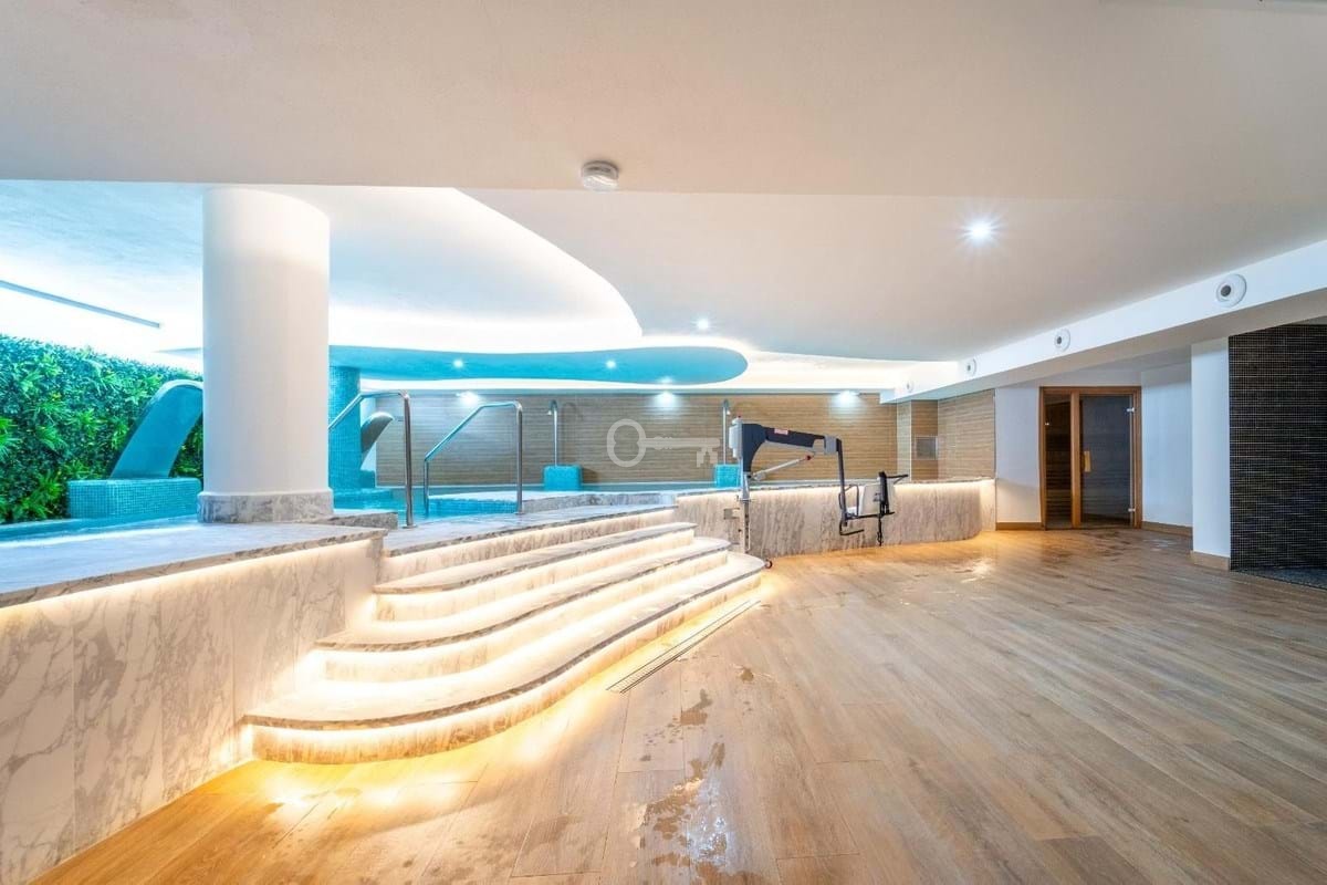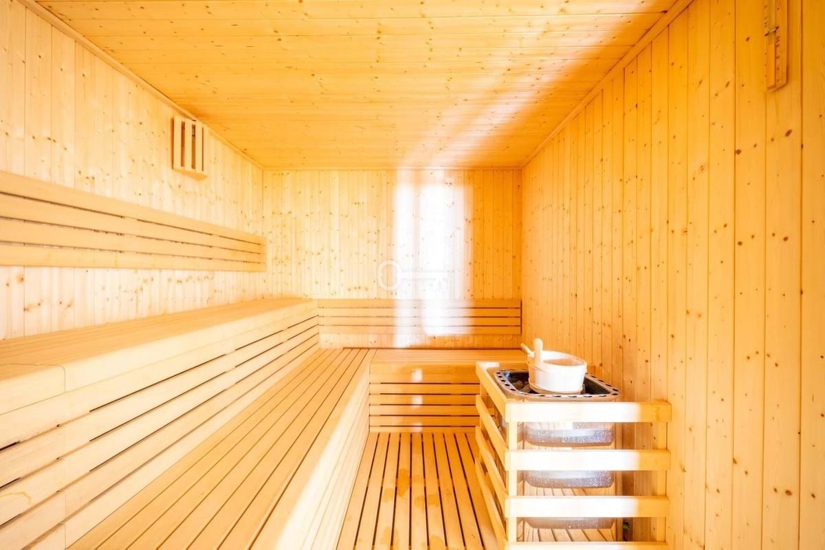 Residents benefit from a wide range of premium amenities within this secure gated community, including an outdoor swimming pool, a childrens pool, a fully equipped gym, a spa with sauna, and an indoor heated pool.