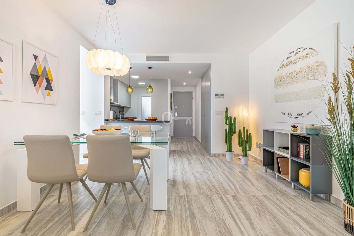 The apartment features two spacious bedrooms and two bathrooms. The modern kitchen is fully equipped with high-quality appliances and also includes a practical utility room. The living room is bright and airy, with large windows and sliding doors that open onto a generous balcony ideal for relaxing or entertaining.