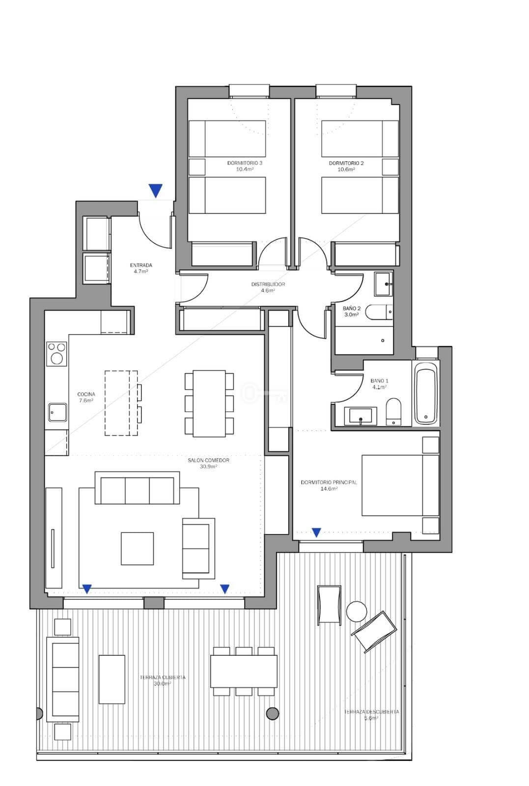 – 3 spacious bedrooms and 2 stylish bathrooms