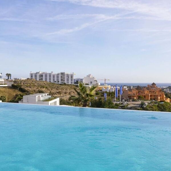 This elegant 3-bedroom, 2-bathroom residence, built in 2021, boasts uninterrupted panoramic views stretching from the glittering Mediterranean Sea to the dramatic Sierra Bermeja mountains.