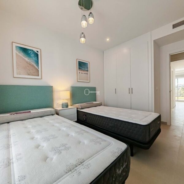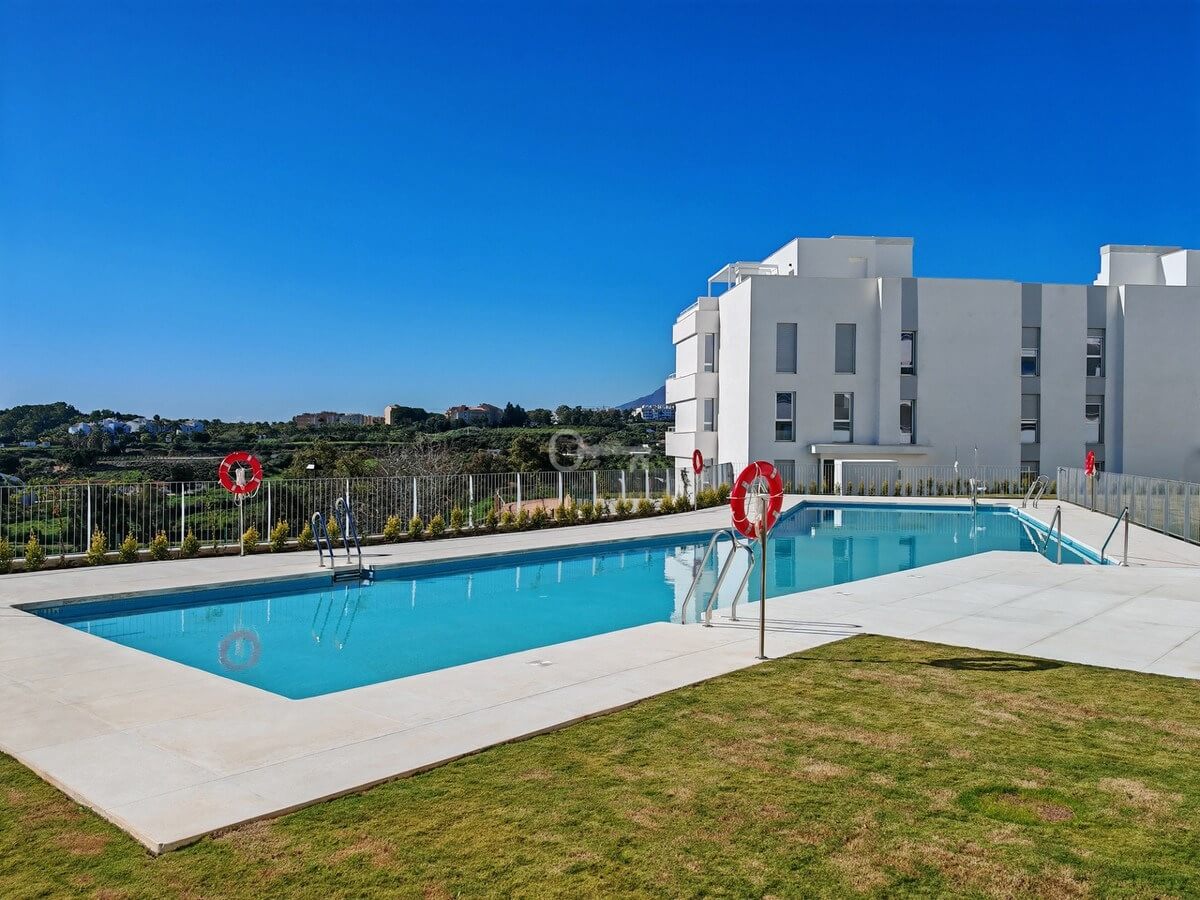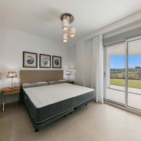 Ground Floor Apartment for sale in Cancelada, Estepona with 2 bedrooms, 2 bathrooms and 1 on suite bathroom, with communal swimming pool, private garage (1 parking spaces) and private garden. Regarding property dimensions, it has 90.6 m² built, 129.4 m² plot, 75.1 m² interior and 25.25 m² terrace. Has the following facilities amenities near, air conditioning, fully furnished, fully fitted kitchen, gym, double glazing, video entrance, brand new, private terrace, water tank, country view, indoor pool, internet – wi-fi, fitted wardrobes, gated community, garden view, panoramic view, close to children playground, close to sea / beach, close to golf, open plan kitchen, spa, excellent condition, close to schools and close to restaurants.