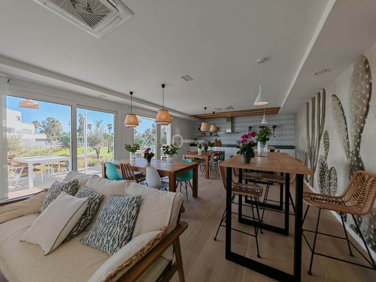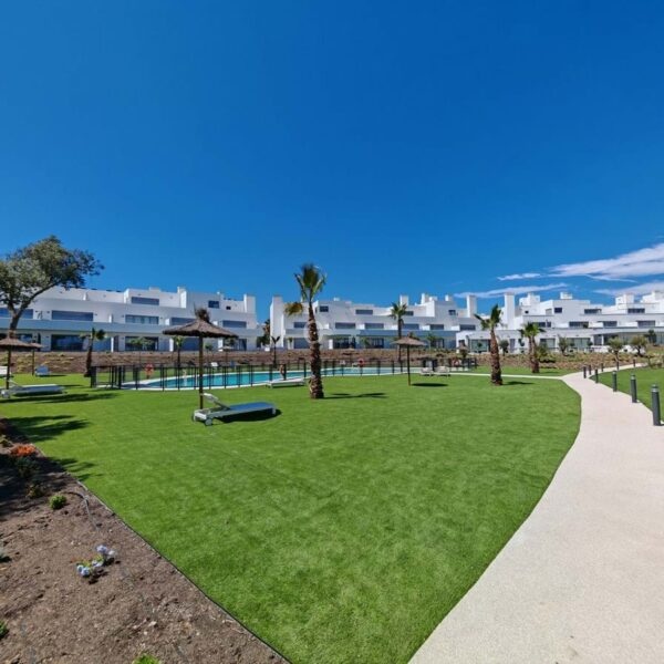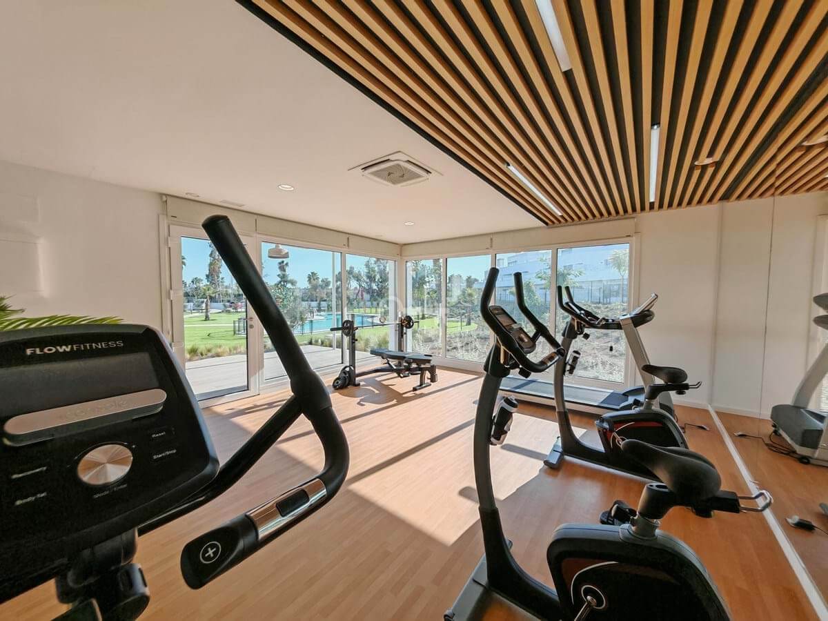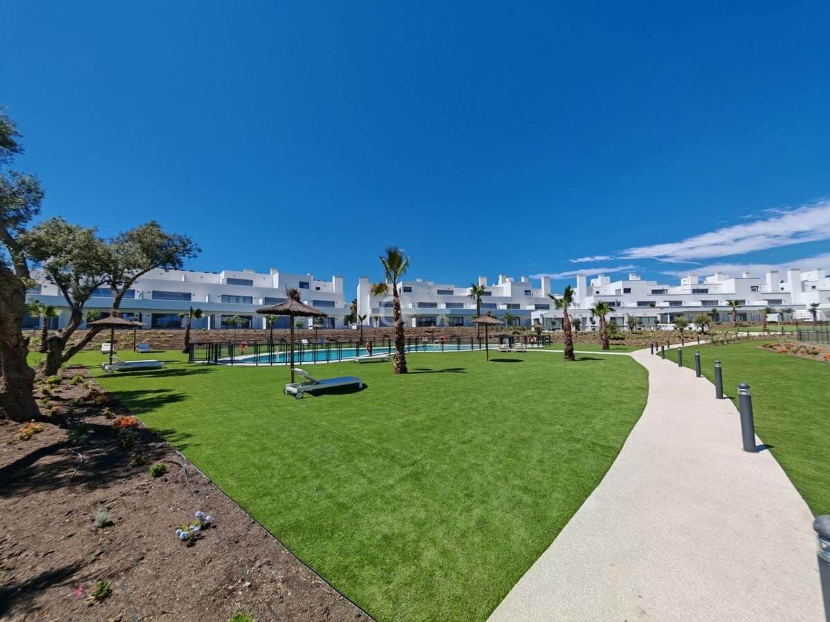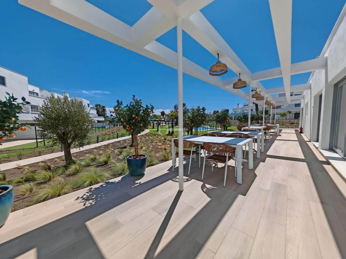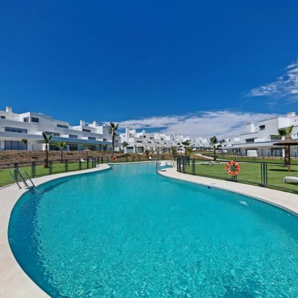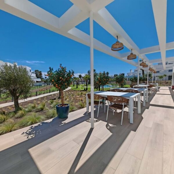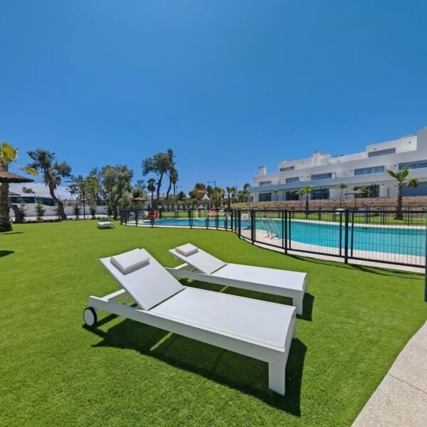 Apartment for sale in Cancelada, Estepona with 2 bedrooms, 2 bathrooms, 1 on suite bathroom and with orientation west, with communal swimming pool, private garage (1 parking spaces) and communal garden. Regarding property dimensions, it has 91 m² built, 73 m² interior and 18 m² terrace. Has the following facilities amenities near, transport near, air conditioning, central heating, fully fitted kitchen, utility room, guest room, storage room, gym, alarm, double glazing, video entrance, brand new, living room, security shutters, laundry room, internet – wi-fi, 24h service, gated community, lift, pool view, unfurnished, close to children playground, close to sea / beach, close to golf, close to shops, close to town, close to schools and surveillance cameras.