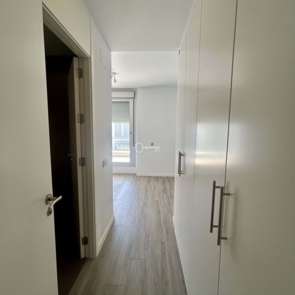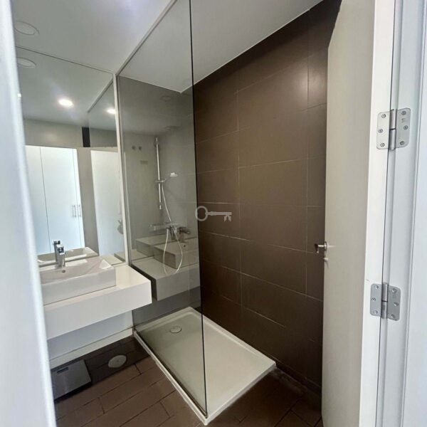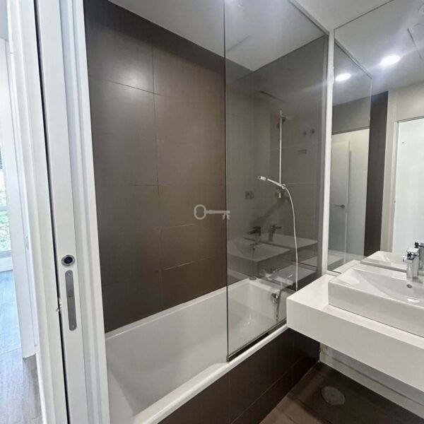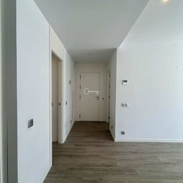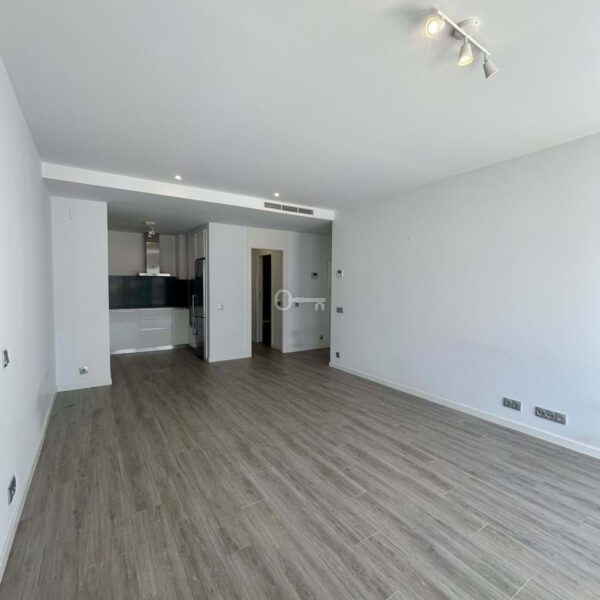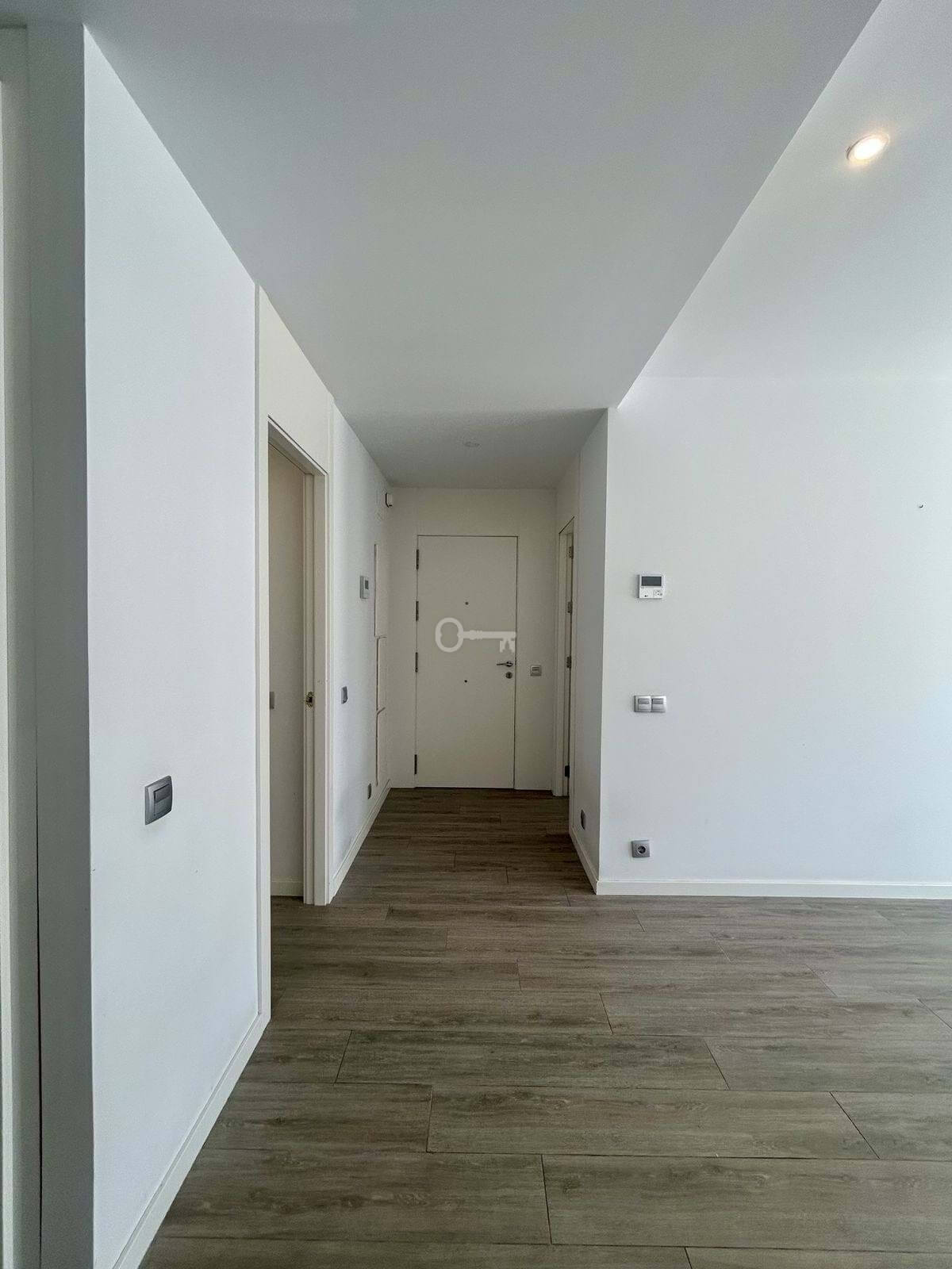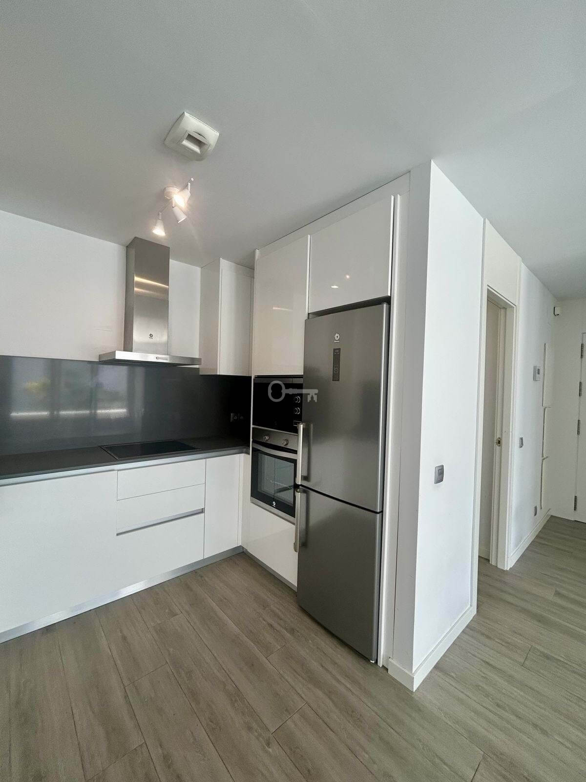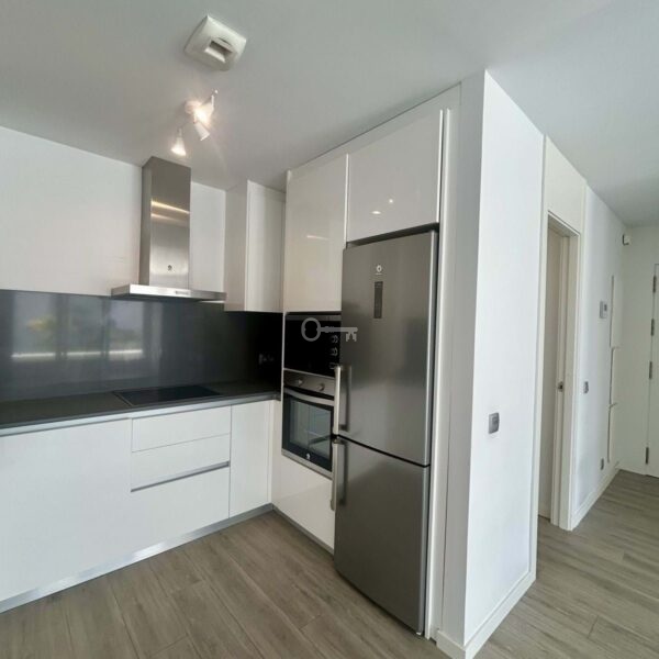 The property features a bright living and dining area with direct access to a private south-facing terrace (23 m²), ideal for enjoying the sun throughout the day. The open-plan kitchen is fully equipped and seamlessly integrated into the living space.