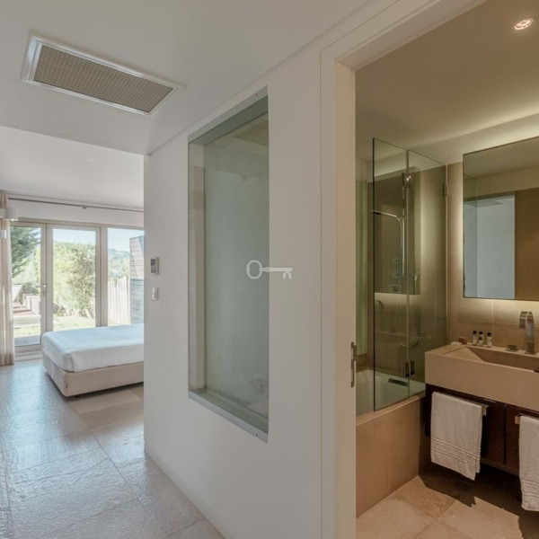 2-bedroom apartment converted into a 1+1-bedroom apartment, 97.80 sqm (gross floor area), garden with swimming pool and sea view with 158.40 sqm, equipped, furnished, and with one parking space and storage room, located in Apartamentos Turísticos da Praia da Arrábida, in Troia Resort, Troia. Standing out for being on the beachfront, with excellent sun exposure, the apartment has two rooms (one of which can be easily converted into a bedroom) with heat recuperator and an equipped American kitchen, a guest bathroom, and a suite. All rooms face the magnificent garden with swimming pool, two large decks and sea views. Double glazed windows, electric shutters and air conditioning. Unique opportunity to have a property in Troia, in excellent condition, built in 2018.Possibility of giving the tourist operation to an operator. Excellent choice for Golden Visa, investment or second home.At a short walking distance from the beach, the Troia Marina, the Ferry Boat and the Golf, just 10-minute driving distance from Comporta and 1 hour from the centre of Lisbon and Humberto Delgado Lisbon Airport.