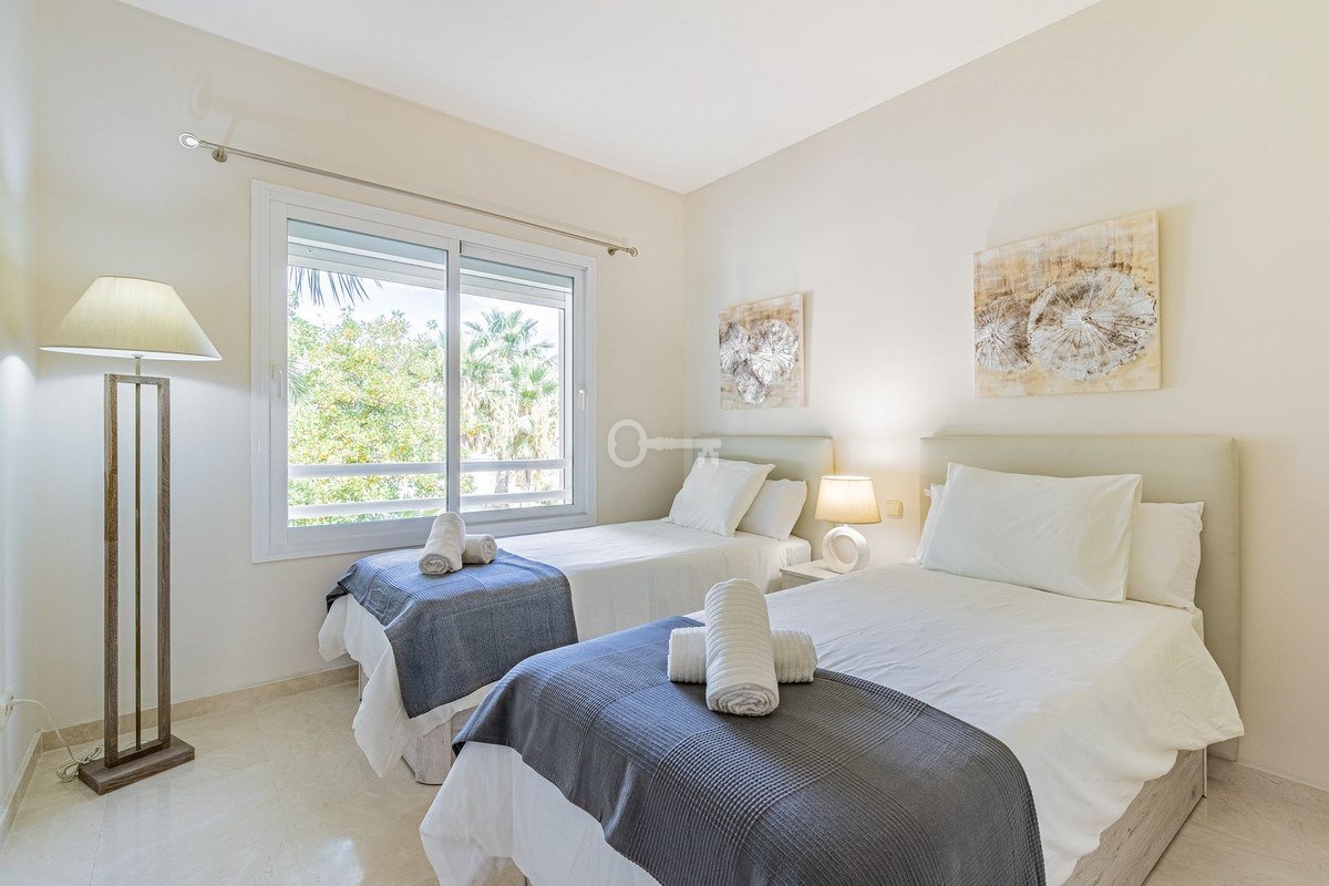 Located in Alcazaba Lagoon urbanisation, this luxury flat is strategically located opposite Estepona Golf, and only a 15-minute drive from the towns of Estepona and Manilva. The accessibility to the AP-7 motorway guarantees a quick and comfortable journey to the main towns of the Costa del Sol. The tranquility of the area is the perfect setting to enjoy outdoor living with family and friends, making this flat the ideal destination for a life of luxury and comfort.