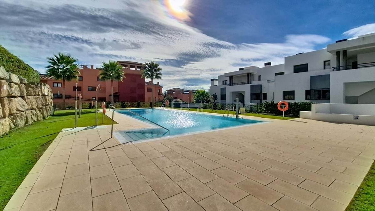The residential complex boasts contemporary architecture, beautifully landscaped green areas and a communal swimming pool.
