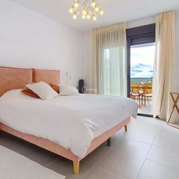 The property comprises an entrance hall, a fully fitted kitchen, a spacious and bright living-dining room with direct access to a large 37 m² terrace, perfect for enjoying breathtaking views over the swimming pool, golf course and mountains. It offers 3 bedrooms, including a master suite, and 2 bathrooms.
