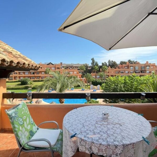 This beautifully maintained 2-bedroom, 2-bathroom penthouse called is ideally located just 900 metres from the beach and boasts an impressive 80 m² private rooftop terrace with pool views and partial sea views. Set within a secure gated community in Casares on the Costa del Sol, residents enjoy access to a communal swimming pool, immaculately landscaped gardens, private parking and a storage room. The property is sold partly furnished and is perfectly positioned near two renowned golf courses, making it especially attractive to golf lovers. With rental use permitted, this penthouse represents an excellent opportunity as a holiday retreat and a high-yield investment offering immediate rental potential.