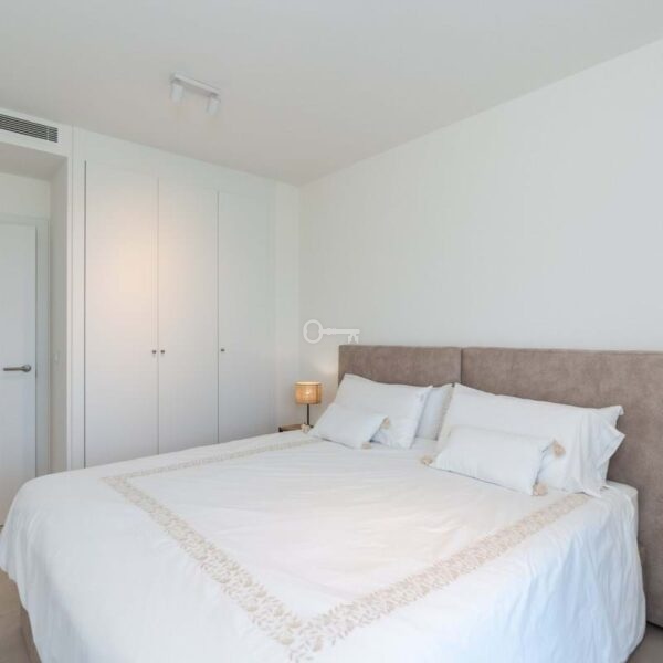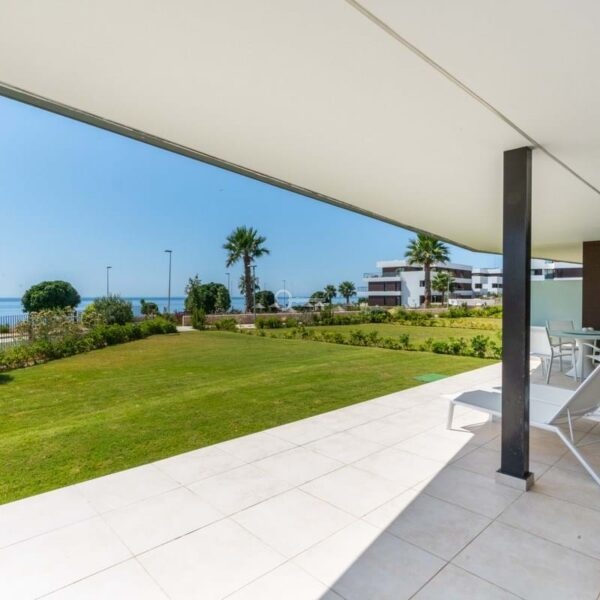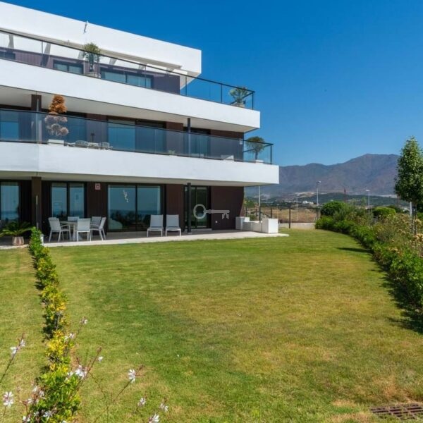 Stunning 3 bedroom 2 bathroom apartment with spectacular sea views in the prestigious new development of La Sabina, Camarate Golf. It is an elevated ground floor and its spacious and bright living-dining room with integrated modern kitchen with an island gives direct access to the incredible 45m2 terrace with covered and uncovered areas, plus a private garden of 240m2 perfect for relaxing moments or al fresco dining all year round. The master bedroom, also with direct access to the terrace, has an en-suite bathroom and large fitted wardrobes. The other two bedrooms share a bathroom and also have fitted wardrobes. The qualities of the apartment include air conditioning hot/cold, electric blinds amongst others, and there is a parking space and storage room included in the price.