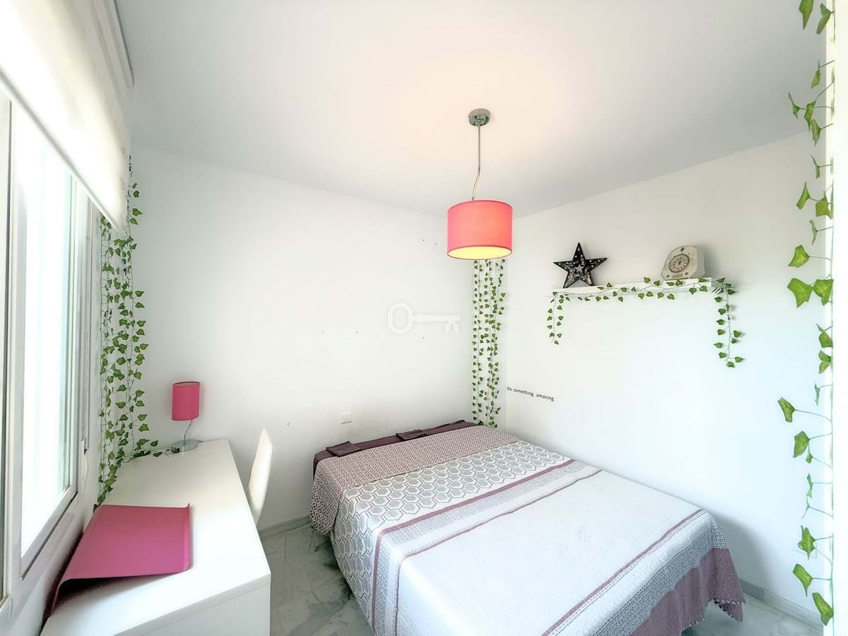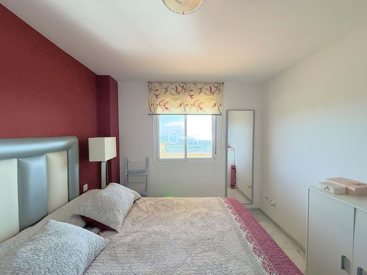 The property is situated on the second floor and features three bedrooms and two bathrooms, along with a spacious east-facing terrace offering stunning panoramic views of the sea and Finca Cortesín Golf Course.
