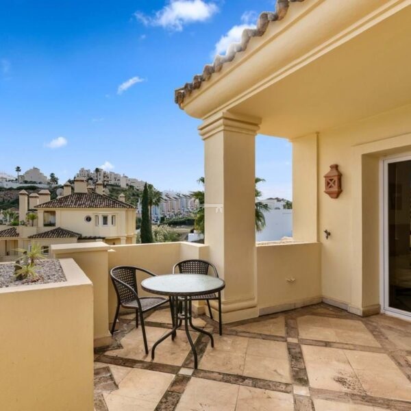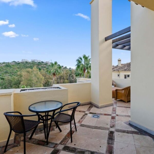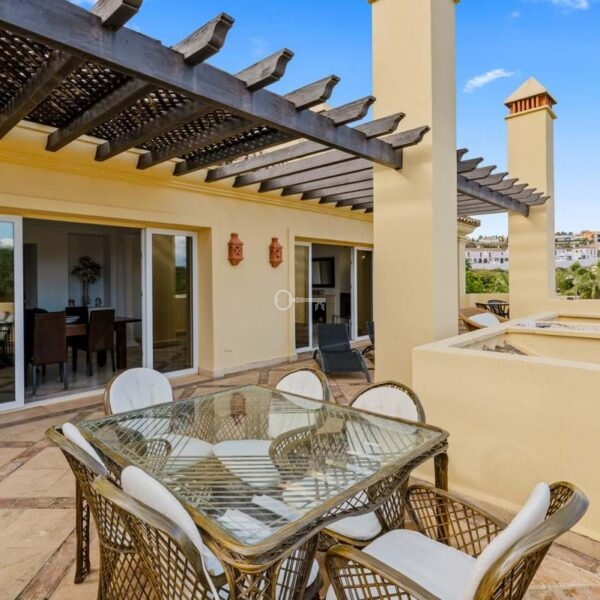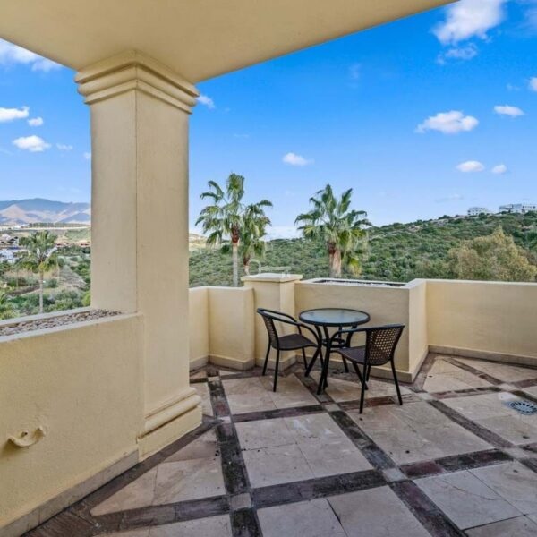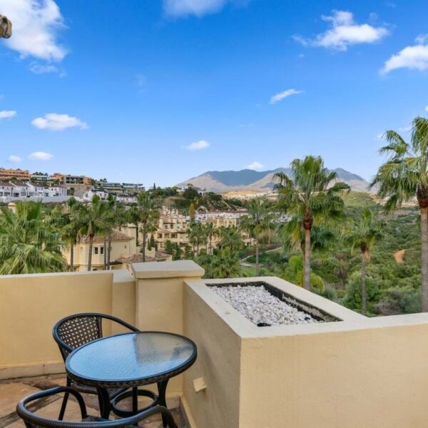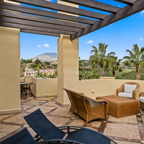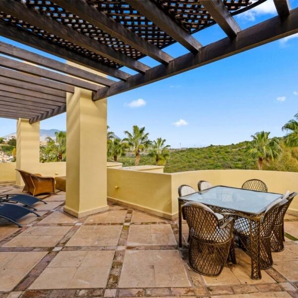 The terrace is mainly uncovered and offers several areas for outdoor dining, entertaining, and sunbathing, while enjoying open mountain views, including Los Reales, as well as some sea views.