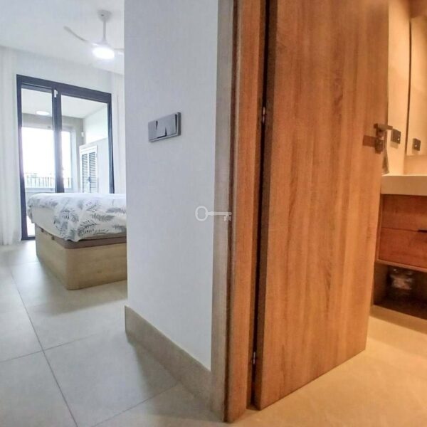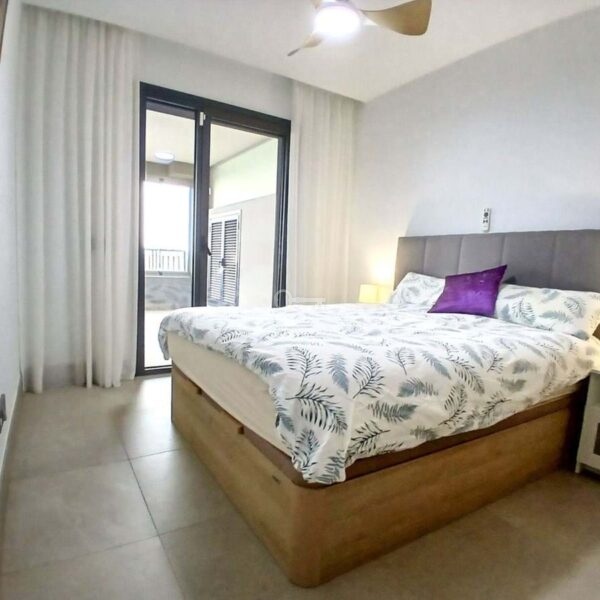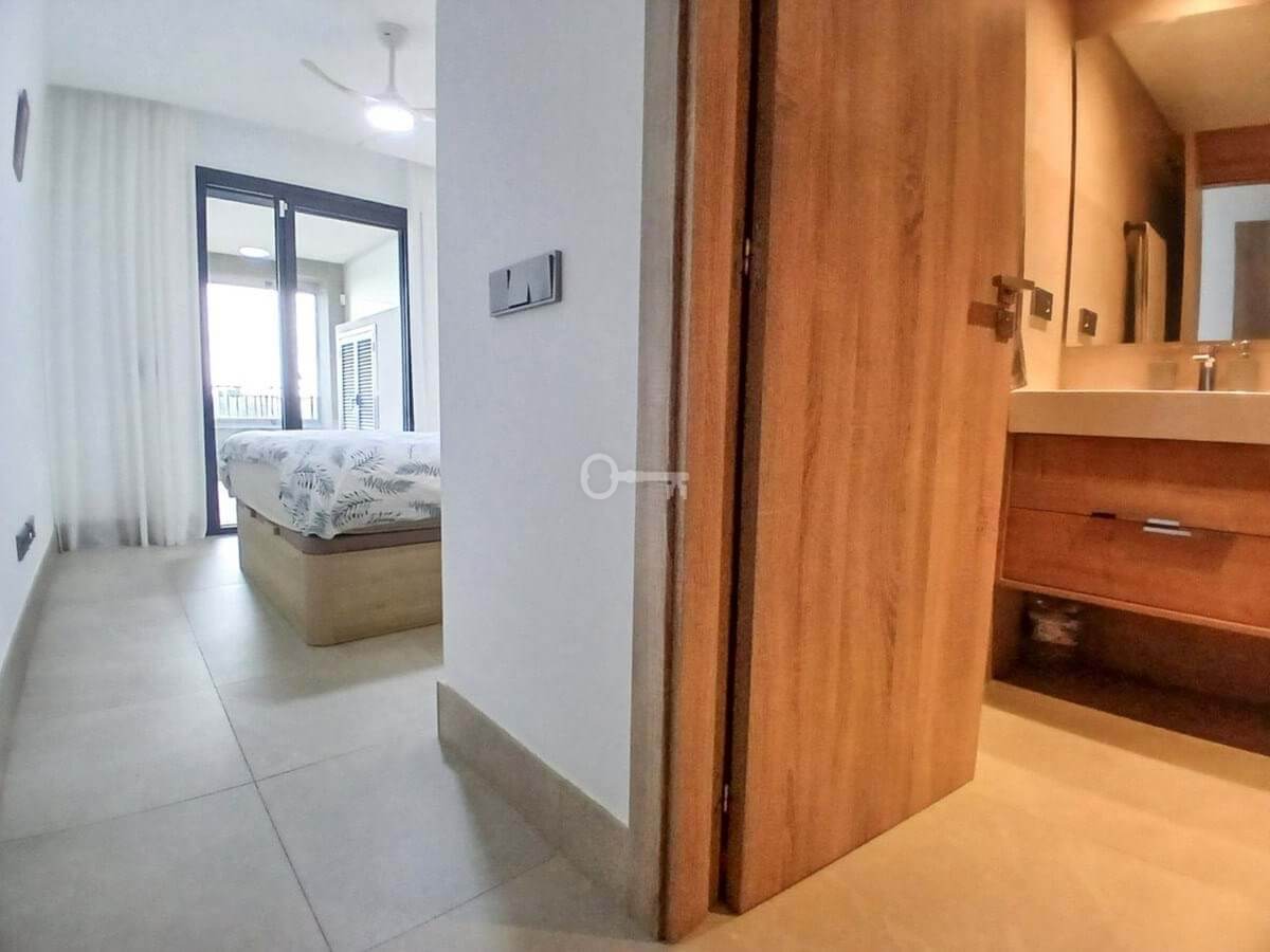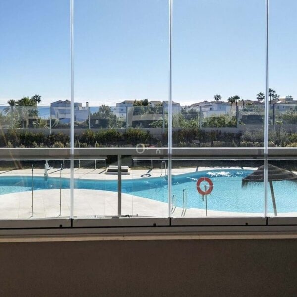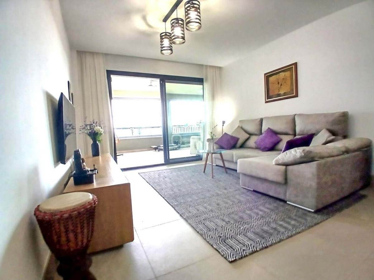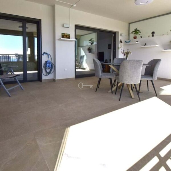 We are delighted to introduce this new contemporary apartment in the popular Solemar development. As you enter, you will find the fully equipped kitchen with all integrated appliances that flow into the spacious lounge and dining area, leading out to the impressive 30m² south-facing terrace offering great sea, garden, and pool views. The master bedroom is a great size, also benefiting from access to the terrace, and has built-in wardrobes with fully finished interiors and a large modern ensuite bathroom. There is also a further double bedroom, again with good wardrobe space, and a full family bathroom with quality sanitaryware, a walk-in shower, and a glass screen. The terrace is covered and has had the premium glass curtain system installed, creating a seamless extension of the interior living, ideal for all-round living . This significantly enhances sound insulation , contributing to a peaceful indoor haven and creating a cozy area for milder evenings.