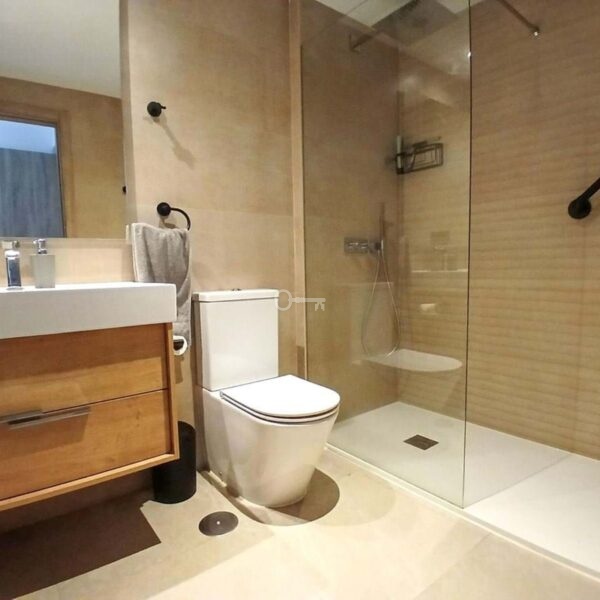 The location is amazing ; just a small flat walk, and you are on the gorgeous sandy beaches and promenade that take you into the picturesque Duquesa port and the Spanish town of Sabanillas. The apartment is newly built, so it comes with all the new technology extras and features, including a geothermal system, glazed aluminum windows, fully installed ducted air conditioning (hot and cold), electric shutters in the bedrooms, and large anti-slip porcelain flooring.