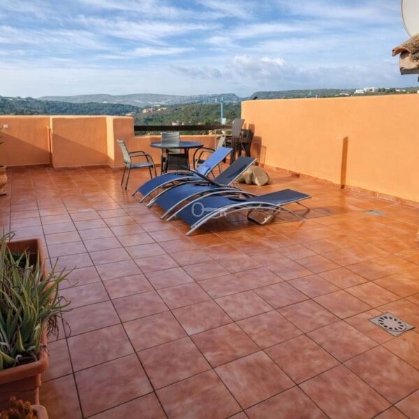 Morning arrives gently in Casares Playa. From your penthouse terrace, the first light spills across the gardens, catching the still surface of the pool and turning it into a soft shimmer. You slide open the terrace doors, step outside, and breathe in the quiet that unmistakable blend of sea air and warm Mediterranean calm.