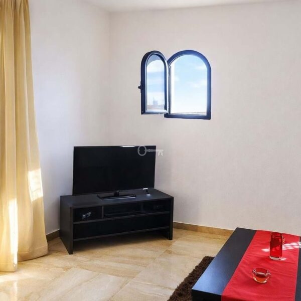 It has two bedrooms and two bathrooms, providing comfort for everyday living as well as for entertaining guests. Marble floors add an elegant touch, while air conditioning ensures year-round comfort. The property is sold furnished and ready to move into.