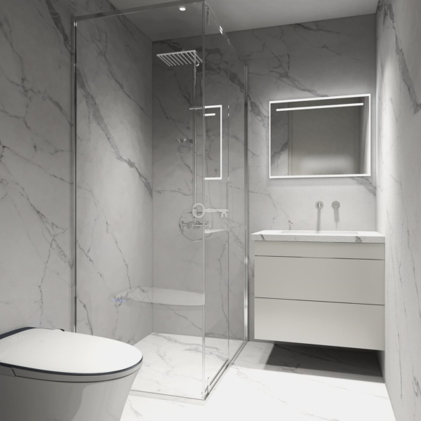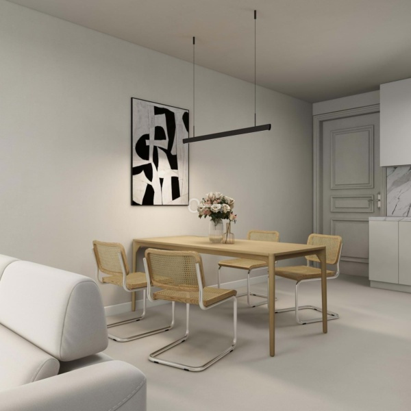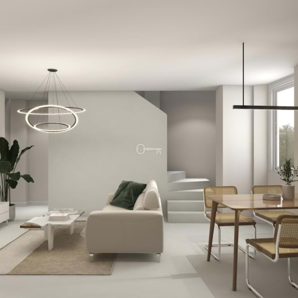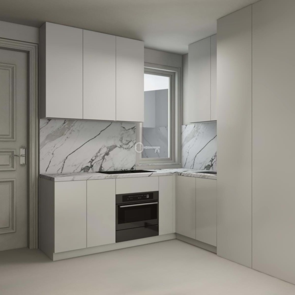 Composed by two bedrooms, a bathroom, a kitchen in open space and a 22,30 sqm patio. The kitchen is fully equipped with household appliances and there is an optional package including furniture and a turnkey system project.