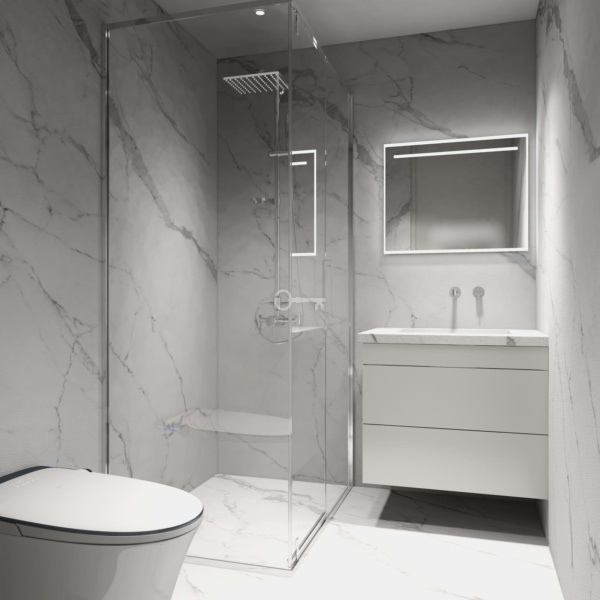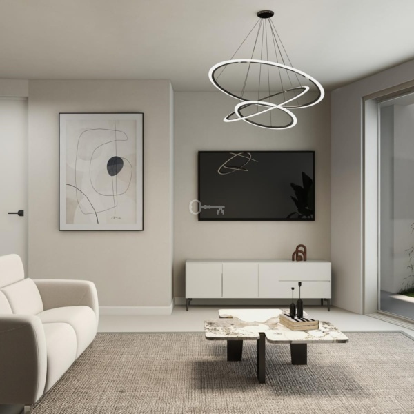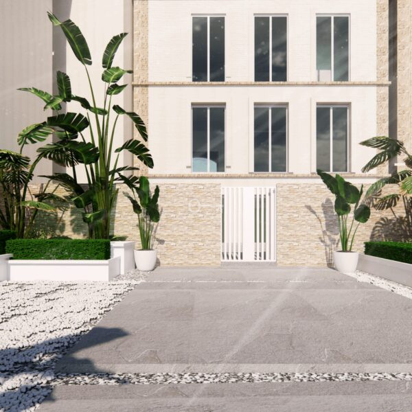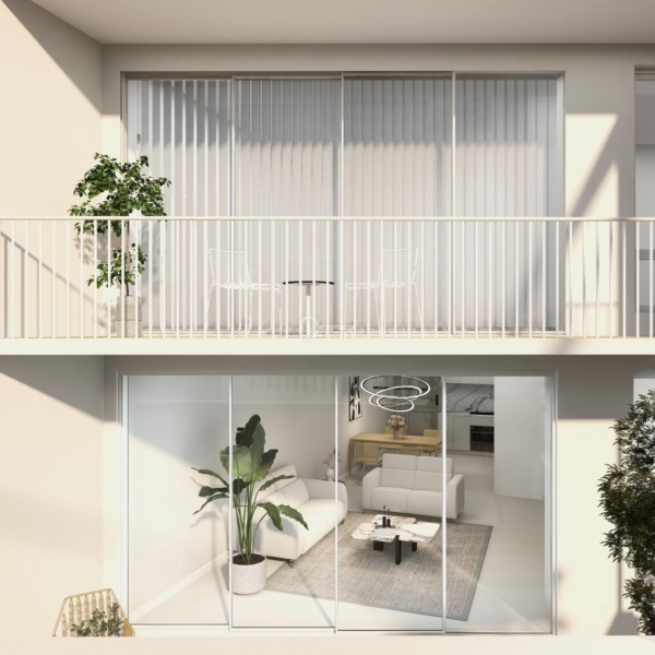 Composed by two bedrooms, a bathroom, a kitchen in open space and a 39,05 sqm patio. The kitchen is fully equipped with household appliances and there is an optional package including furniture and a turnkey system project.