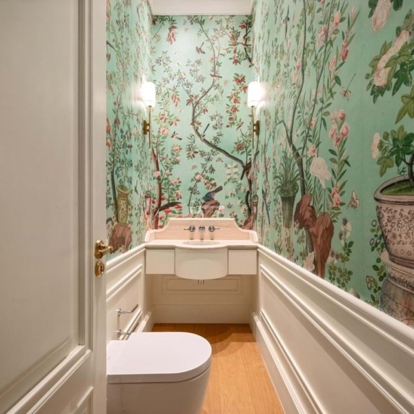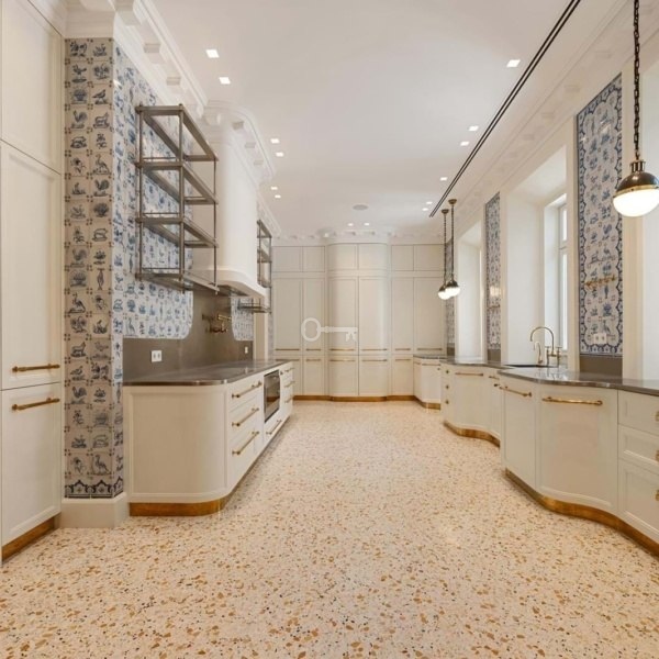 Hand-poured Venetian terrazzo flooring and 18th-century-style hand-painted Figura Avulsa azulejos