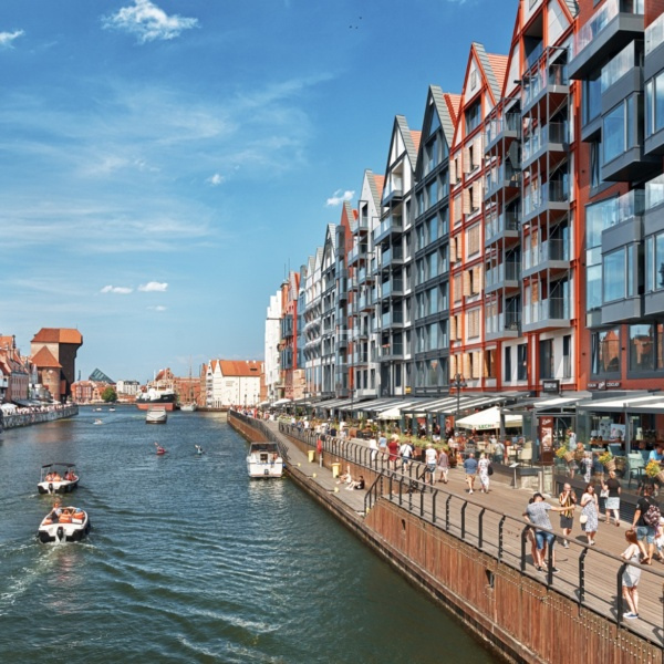 Wyspa Spichrzów (The Granary Island), Gdańsk, the Old Town. An additional advantage of this location is the proximity of the Gdańsk marina and so called: “Deo Pasaż” – Deo Passage, which includes, among others, an amber gallery, restaurants, coffee shops and clubs, such as the three-story Deo Sassy, filled with art and design.
