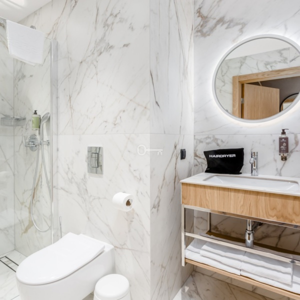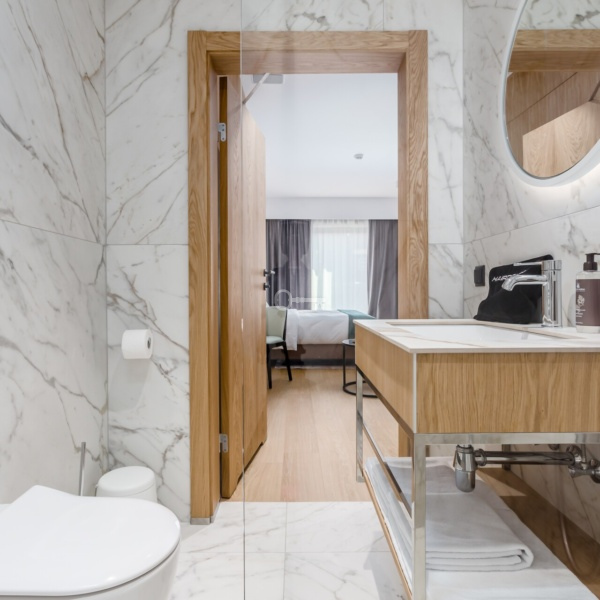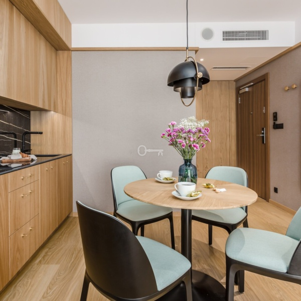 The apartment is fully finished and furnished with the highest quality materials. The modern and fully functional architectural design will certainly satisfy the most demanding customers.