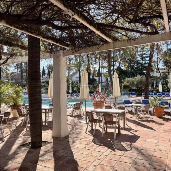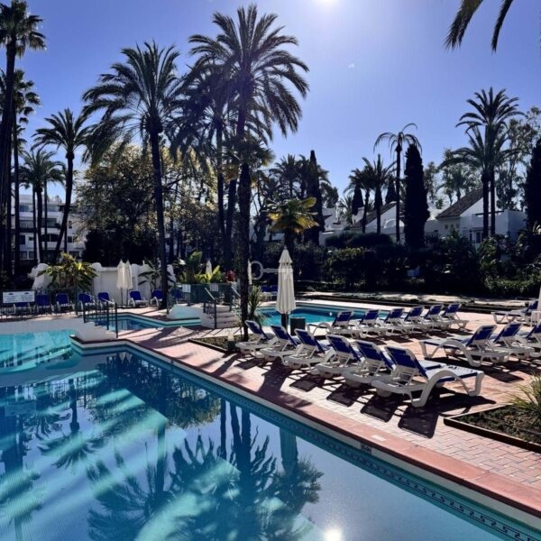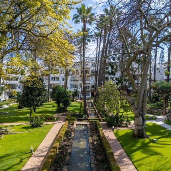 This apartment is located in La Alcazaba, one of the most sought-after residential communities between Puerto Banús and the Golden Mile. As soon as you enter the complex, it becomes clear why: Moorish architecture, winding pathways and approximately 20,000 m² of tropical gardens create an immediate holiday atmosphere, while the beach and promenade are just a short walk away.
