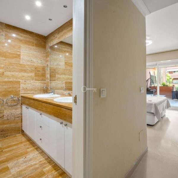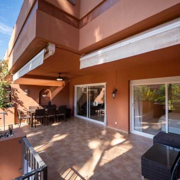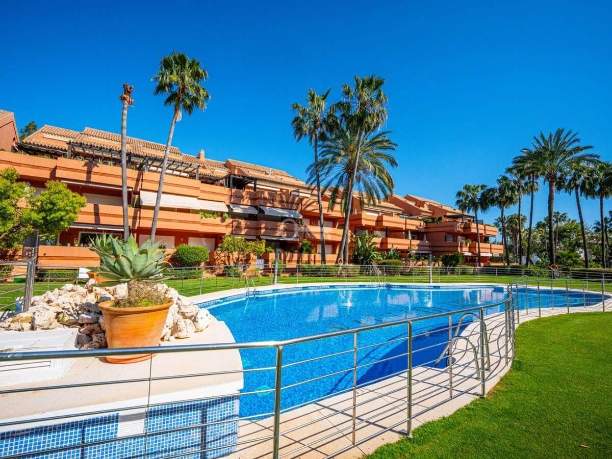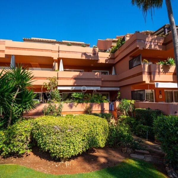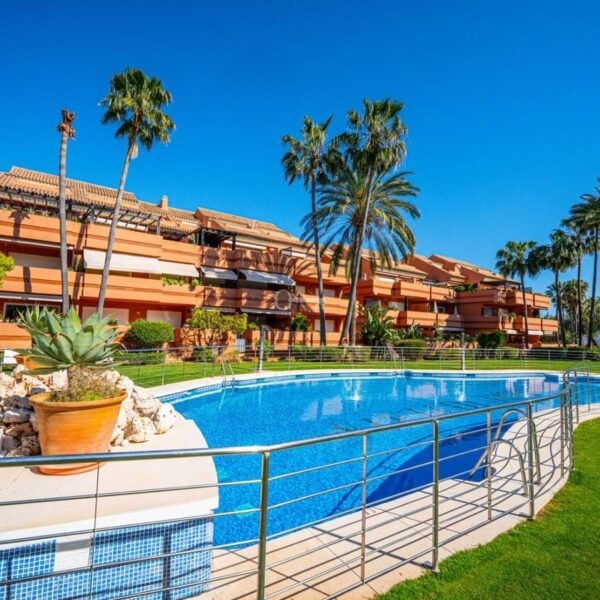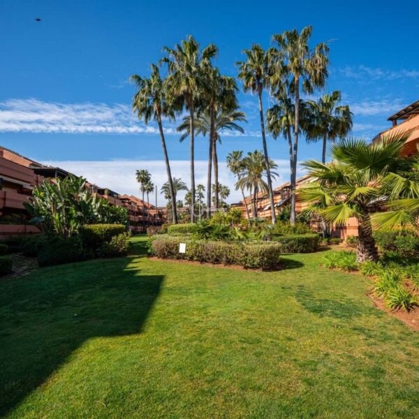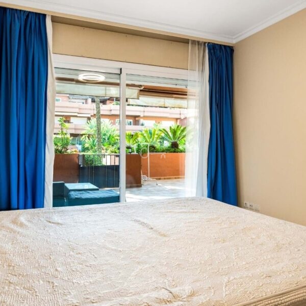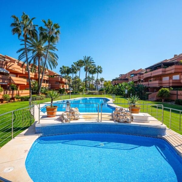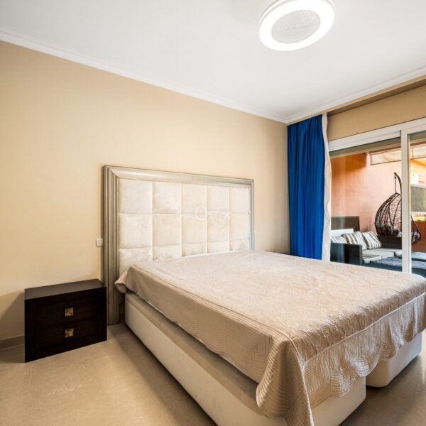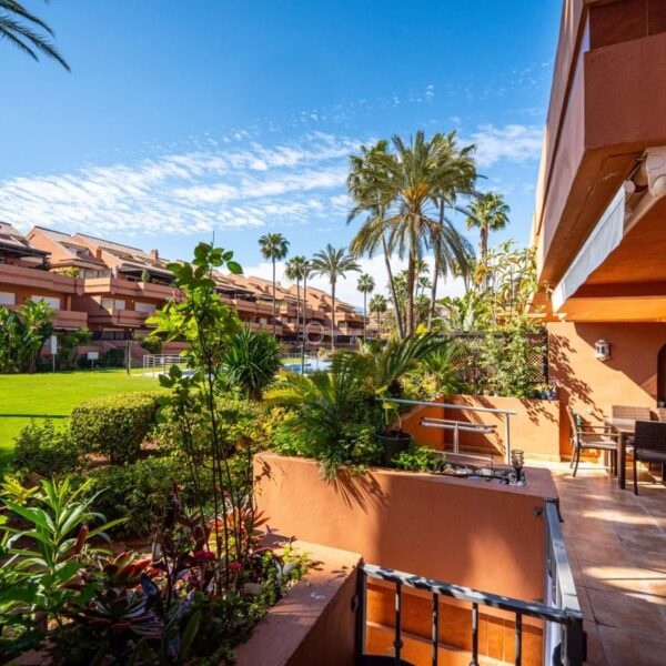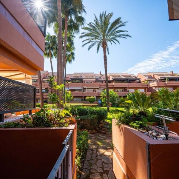 This is a stunning elevated ground floor apartment with 2 bedrooms and 2 bathrooms in a gated community in Puerto Banús. It includes a private parking space, a communal pool and gardens, and is fully furnished. The apartment is within walking distance to the beach and all local amenities, making it ideal for easy coastal living.