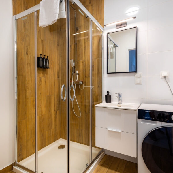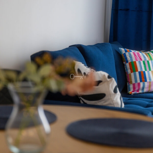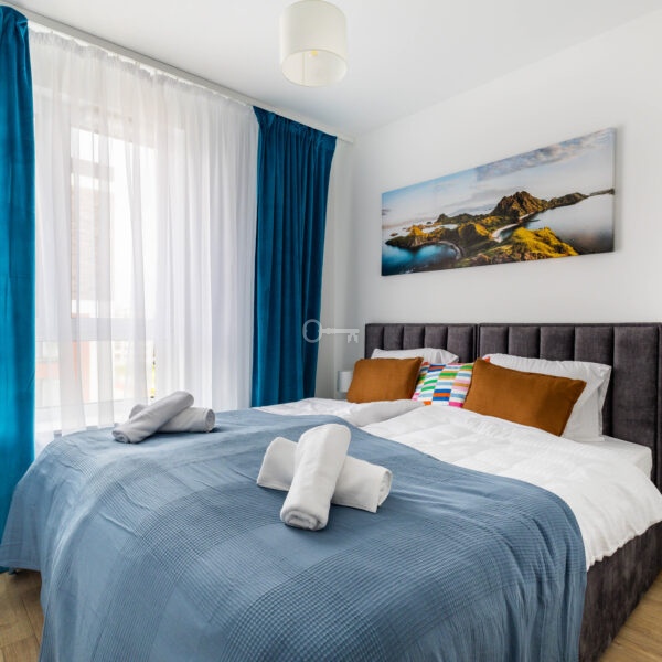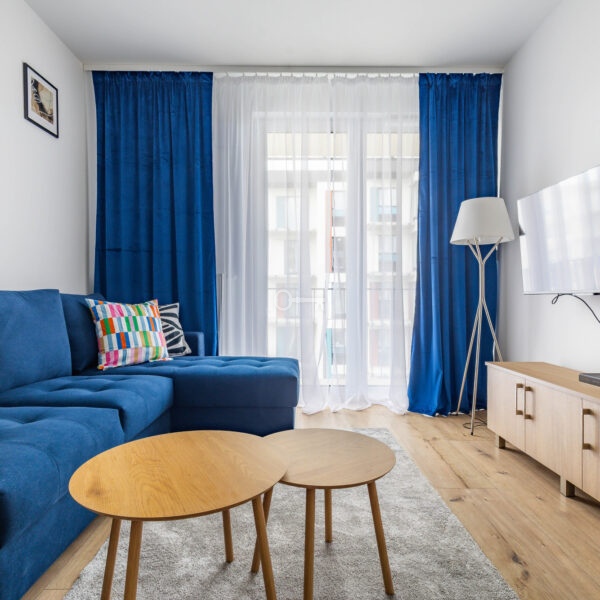 The apartment is in very good condition, completely new and ready to move in. The height of the rooms (2.7 m) enhances the feeling of space. The apartment is fully furnished and equipped with new household appliances. The floors are covered with panels, and PVC windows provide excellent sound and thermal insulation.