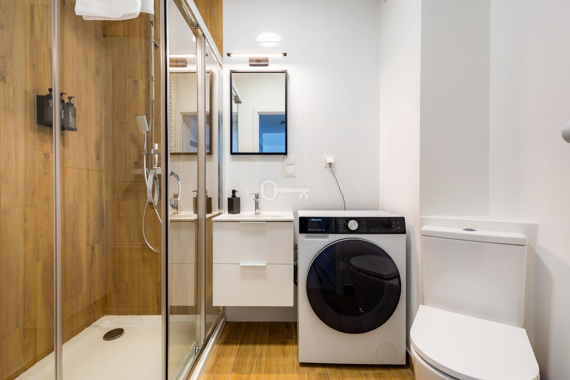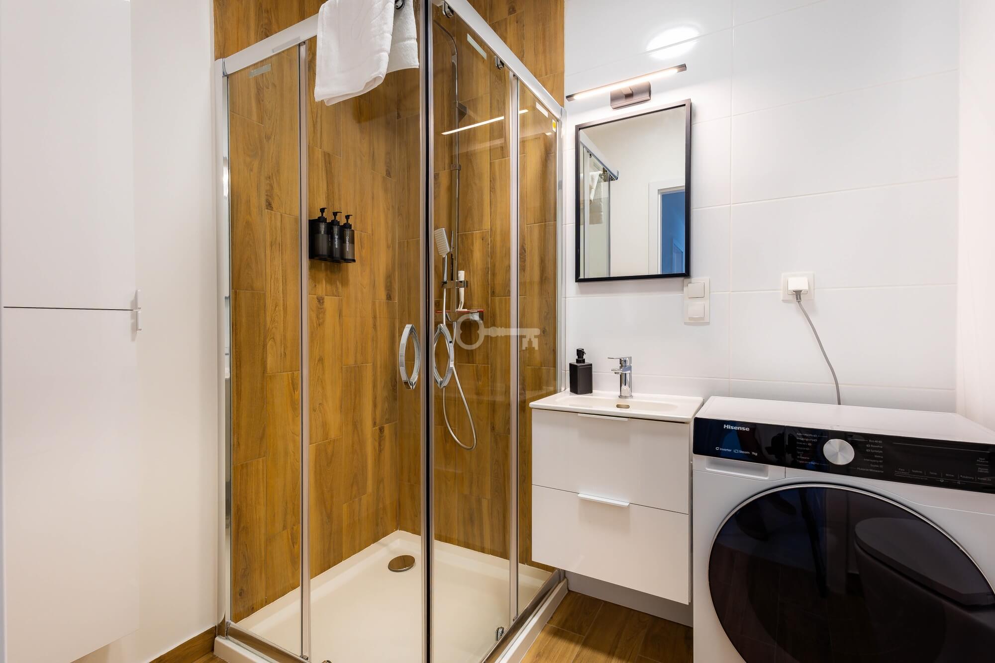 * modern bathroom with a shower,