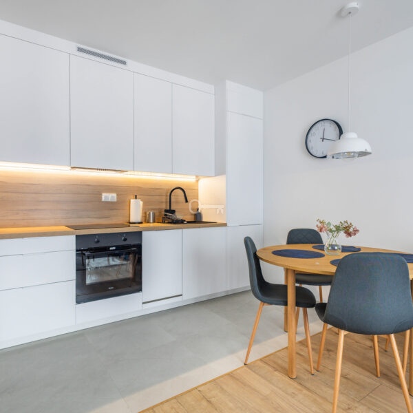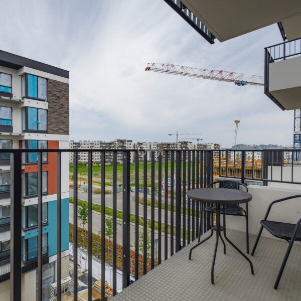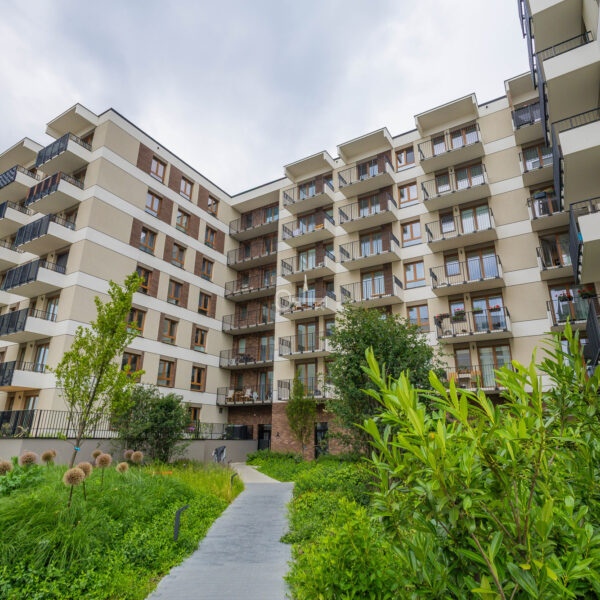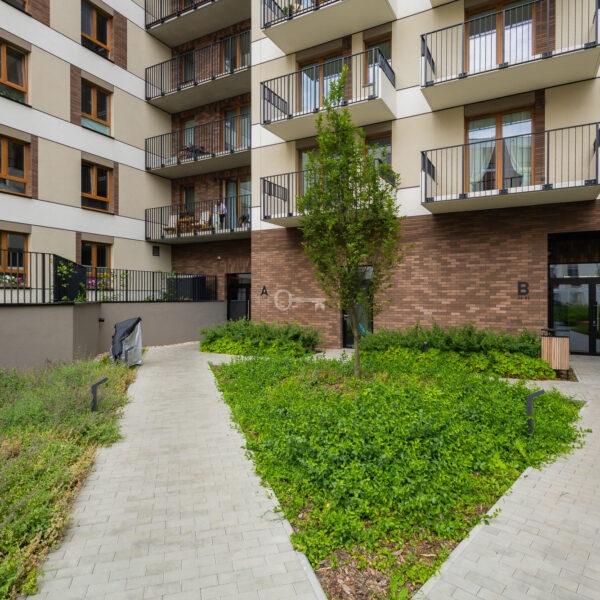 The apartment is located at 49 Człuchowska Street in Warsaw’s Bemowo district. It is a dynamically developing district, valued for its excellent infrastructure and transport links.