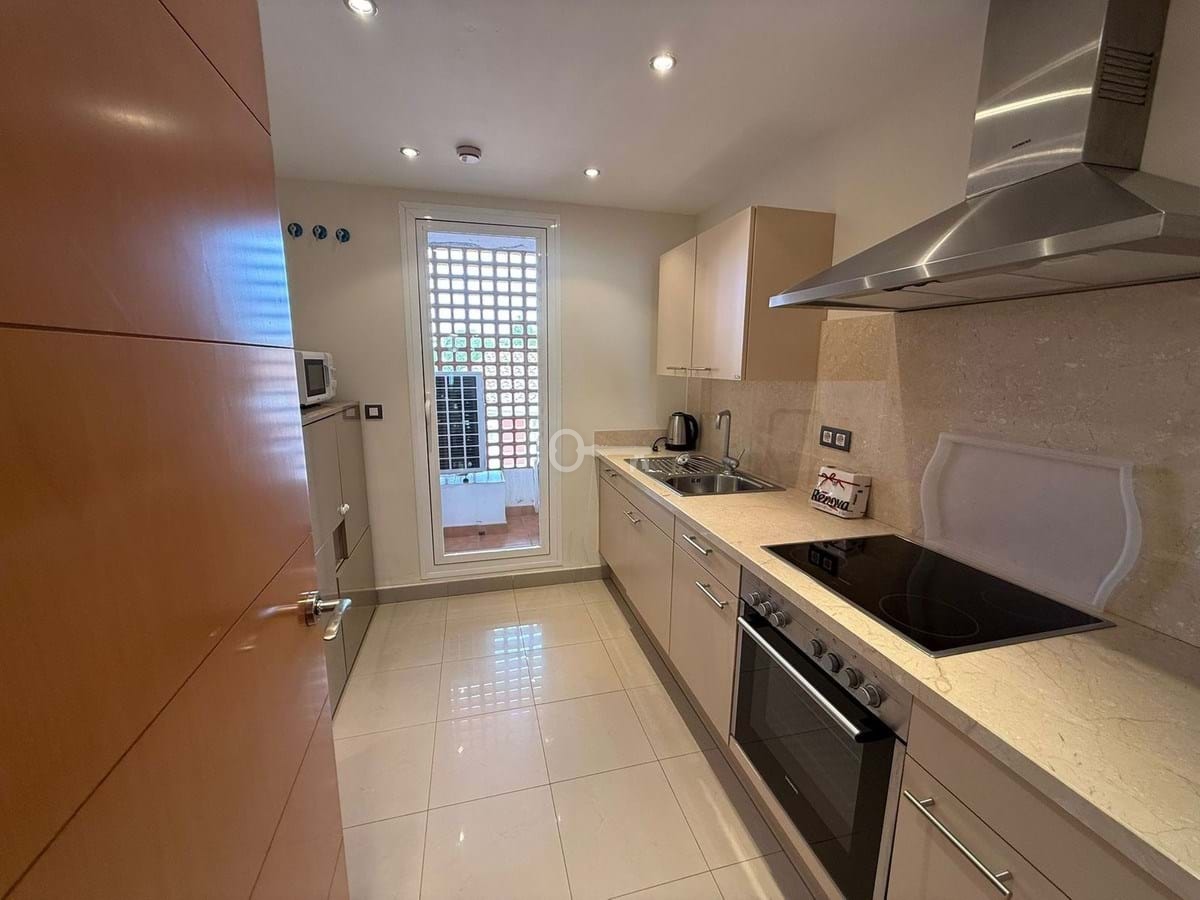 This beautifully presented corner apartment boasts wonderful views towards the communal gardens and swimming pool from its spacious terrace and has partial sea views, fully fitted kitchen, modern living and dining area, spacious master bedroom with access to the terrace and en-suite bathroom. A further bedroom with fully fitted wardrobes and an additional family bathroom. Hot an cold air conditioning throughout, underground parking and store room are also included.