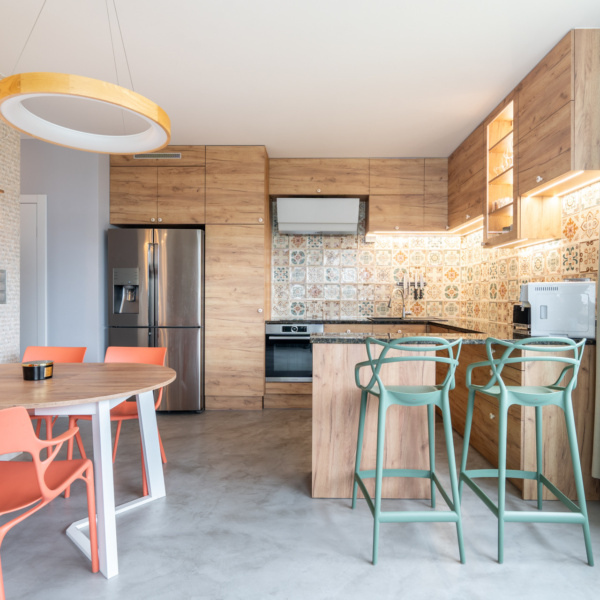 The property has been finished with high-quality materials and equipped with top-brand household appliances (oven, stove, dishwasher, refrigerator).
