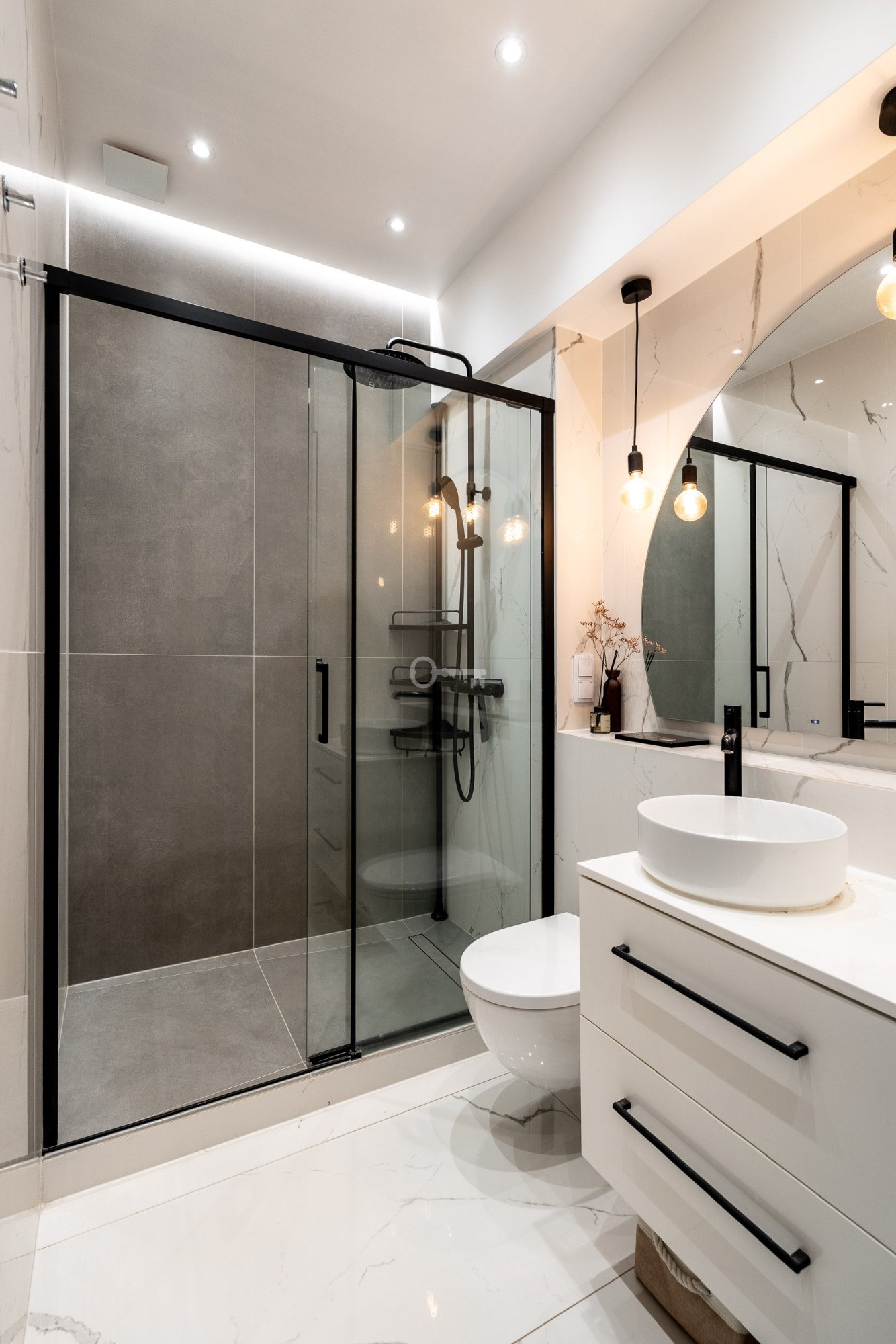 * Bathroom with shower cabin,
