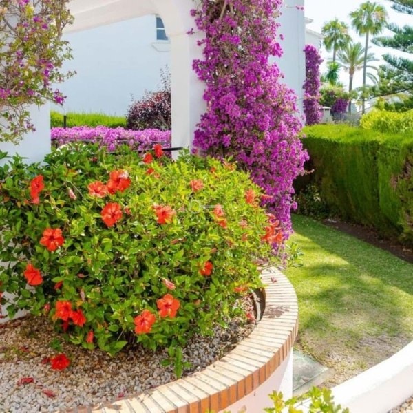 Immaculately maintained tropical palm residents gardens and impressive swimming pool with a cascading Golf waterfall feature designed within the characteristic floral Andalusian gardens and tiled pathways exquisitely decorating the community throughout.