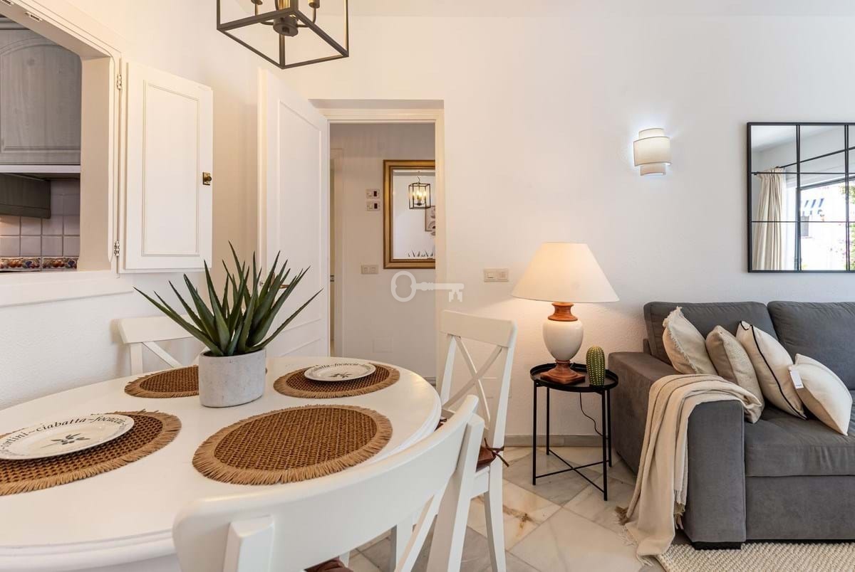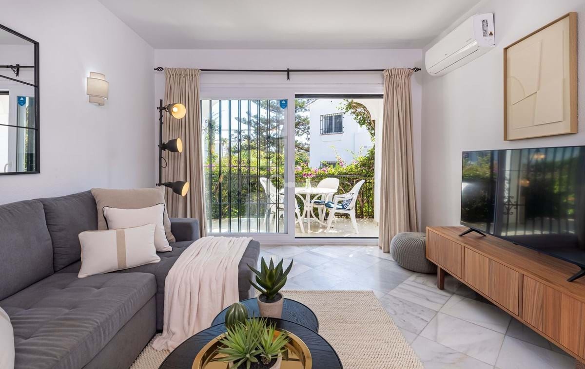 Excellent opportunity to acquire a one level garden apartment with a spacious storage room/Andalucian courtyard in El Paraiso Cortes Del Golf, Benahavis.