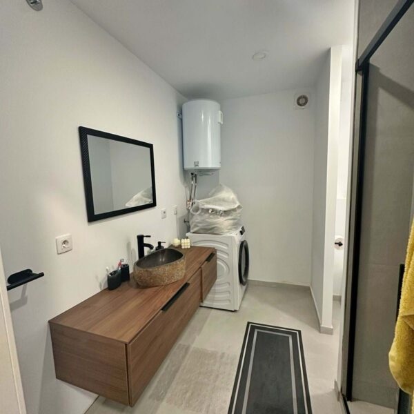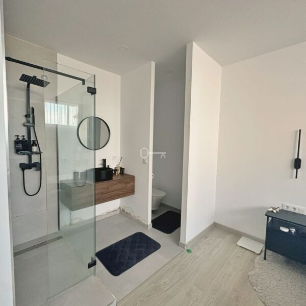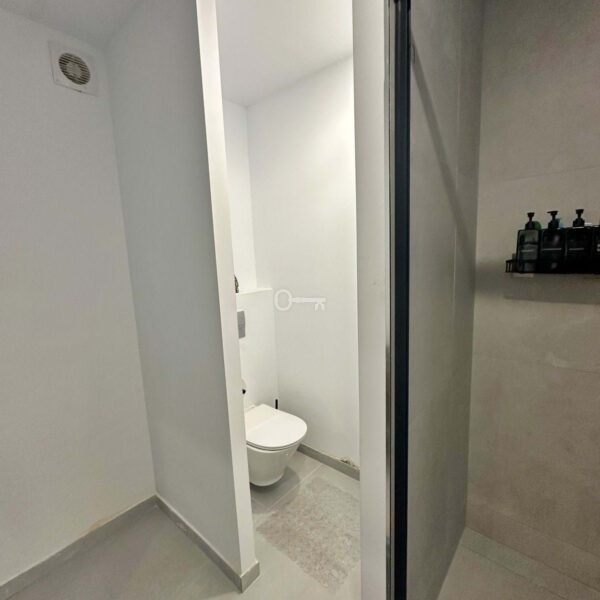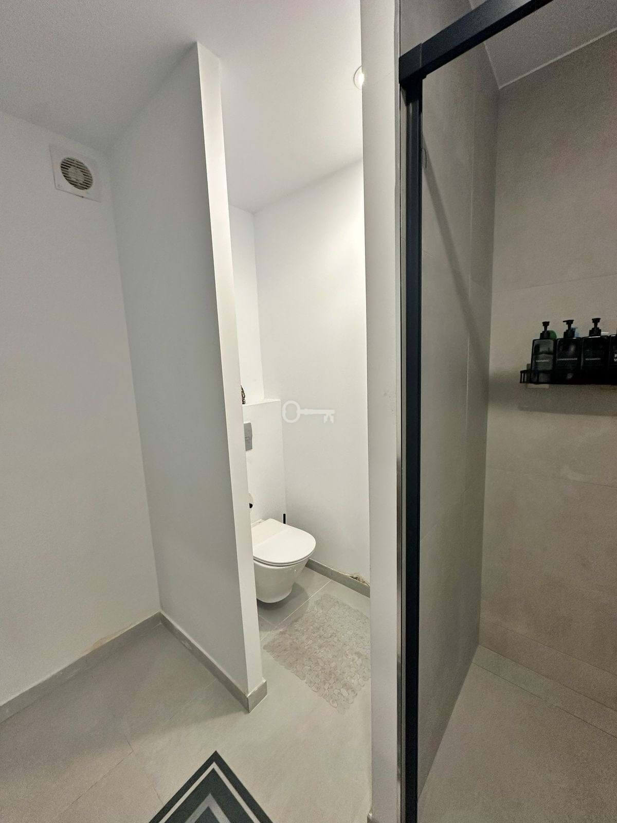 The second apartment is located one level below and currently has an open-plan layout with 2 bedrooms and 2 bathrooms. Total area: 116 m².
