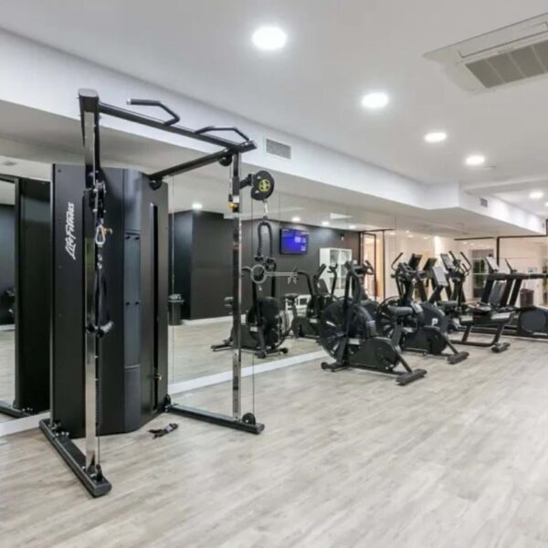 Residents of this modern complex enjoy an impressive range of amenities, including a fully equipped gym, on-site bar, and dedicated work and co-working spaces, catering perfectly to both leisure and remote-work lifestyles.