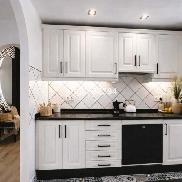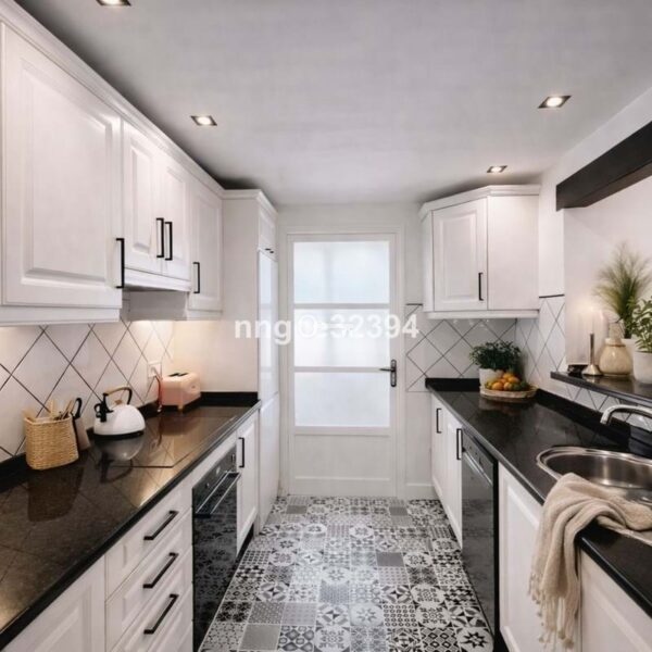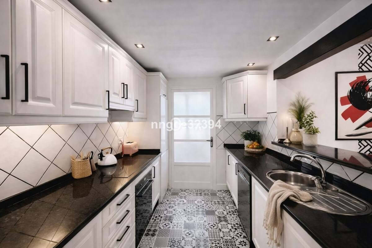 Inside, a gallery-inspired layout unfolds in dramatic black-and-white contrasts, warmed by sleek wood flooring and bathed in natural light from expansive windows. The sleek kitchen wrapped in polished black granite flows into an airy open-plan living and dining area created for stylish gatherings and intimate dinners alike. Two serene, spa-like bathroomsone featuring a deep soaking tuboffer a private retreat.