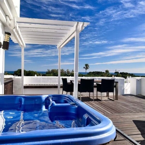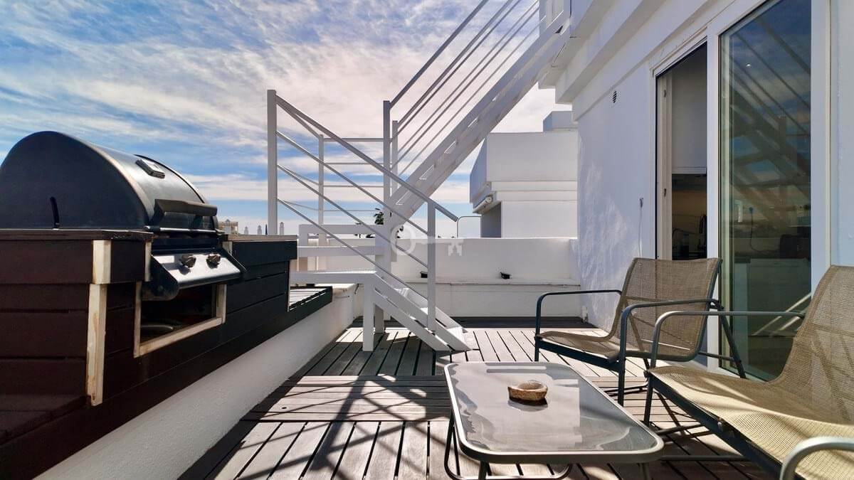 The upper level is the highlight of the property: a spacious rooftop terrace with jacuzzi and a second barbecue area, offering panoramic views of the sea, La Concha and even Gibraltar. A very rare feature at this price point, perfect for both personal use and rental investment.