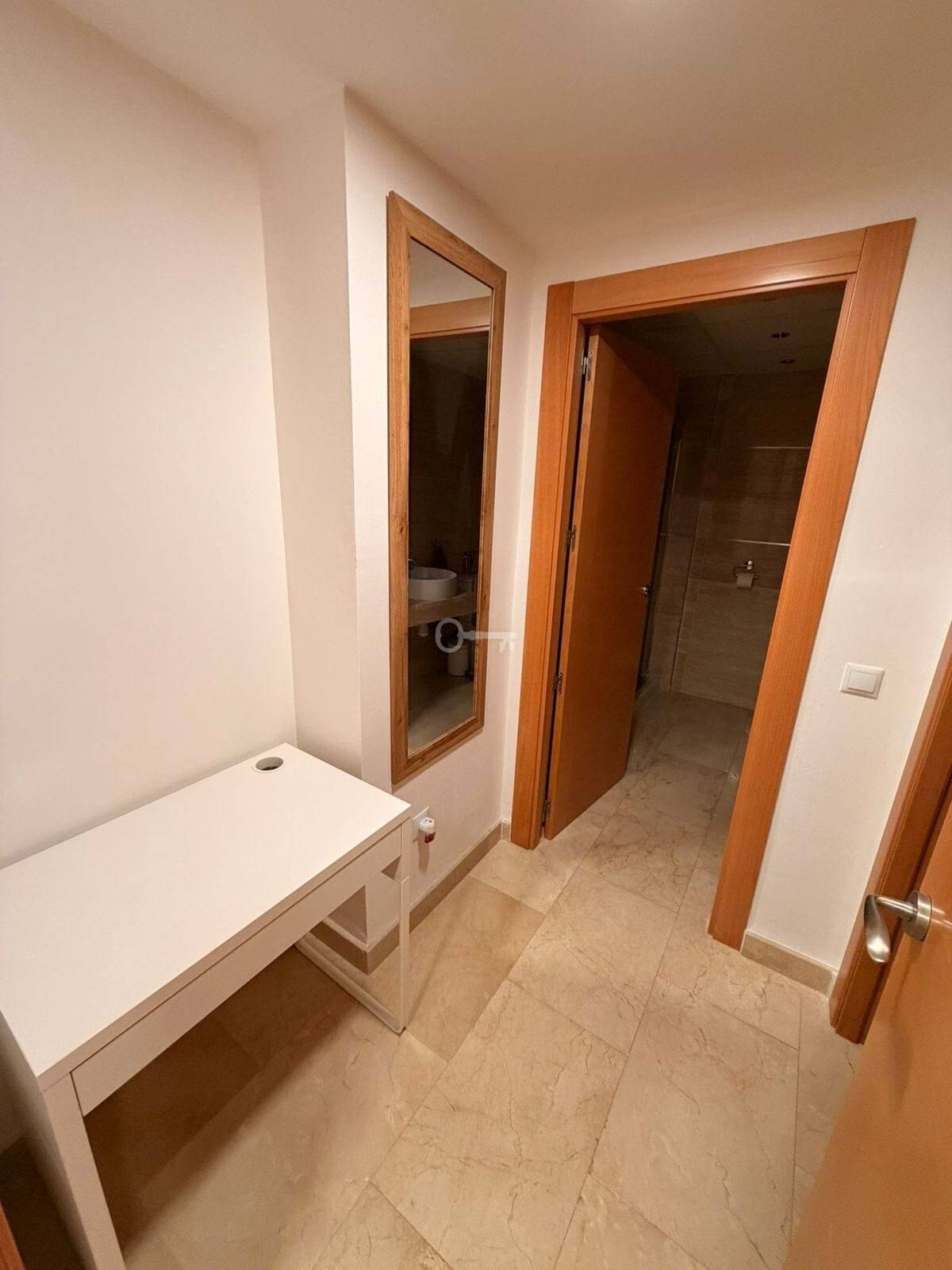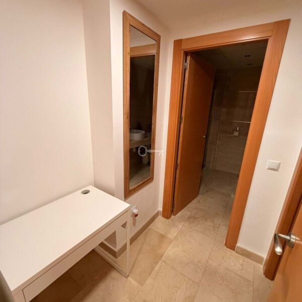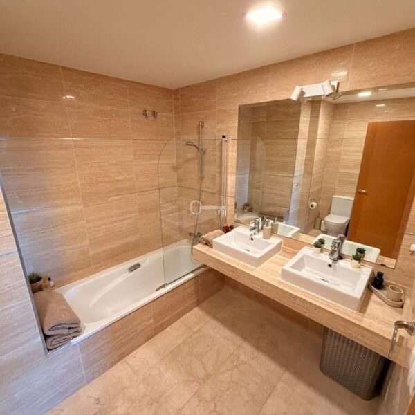 Both bedrooms are spacious, with the master offering an en-suite bathroom, while the second bathroom serves guests or family members. The apartment also includes a private parking space and a storage room, adding convenience and practicality.
