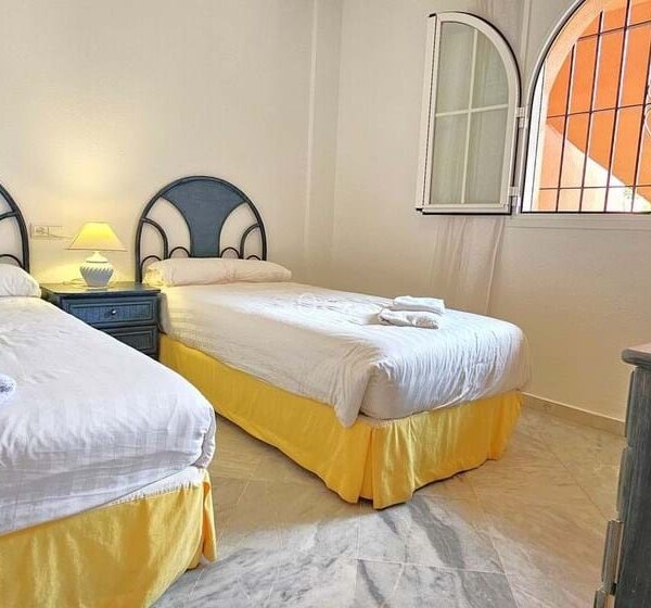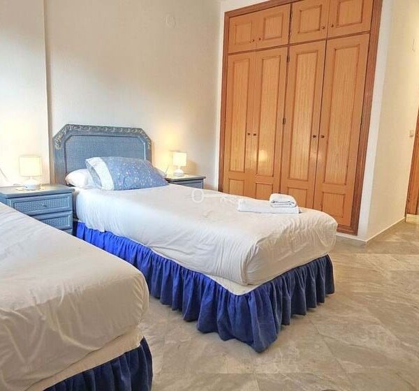 The Alvarito Playa residential complex is highly sought-after due to its prime location next to some of Marbellas finest beaches, with natural sand dunes and crystal-clear waters. It is a quiet, family-friendly, and exclusive community featuring three swimming pools and beautifully maintained tropical gardens. There is 24-hour security, direct access to the beach, two tennis courts, and a natural grass football field.