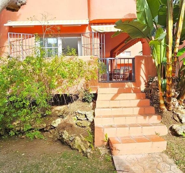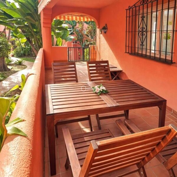 Fantastic, spacious and bright seaside elevated ground floor corner apartment, in a beachfront residential complex, located on one of the best beaches in Marbella. It features a large, very pleasant terrace that surrounds the entire property, perfect for enjoying breakfast, lunch, or dinner while making the most of Marbellas sunny climate. The apartment overlooks the lush, beautifully maintained tropical communal gardens.