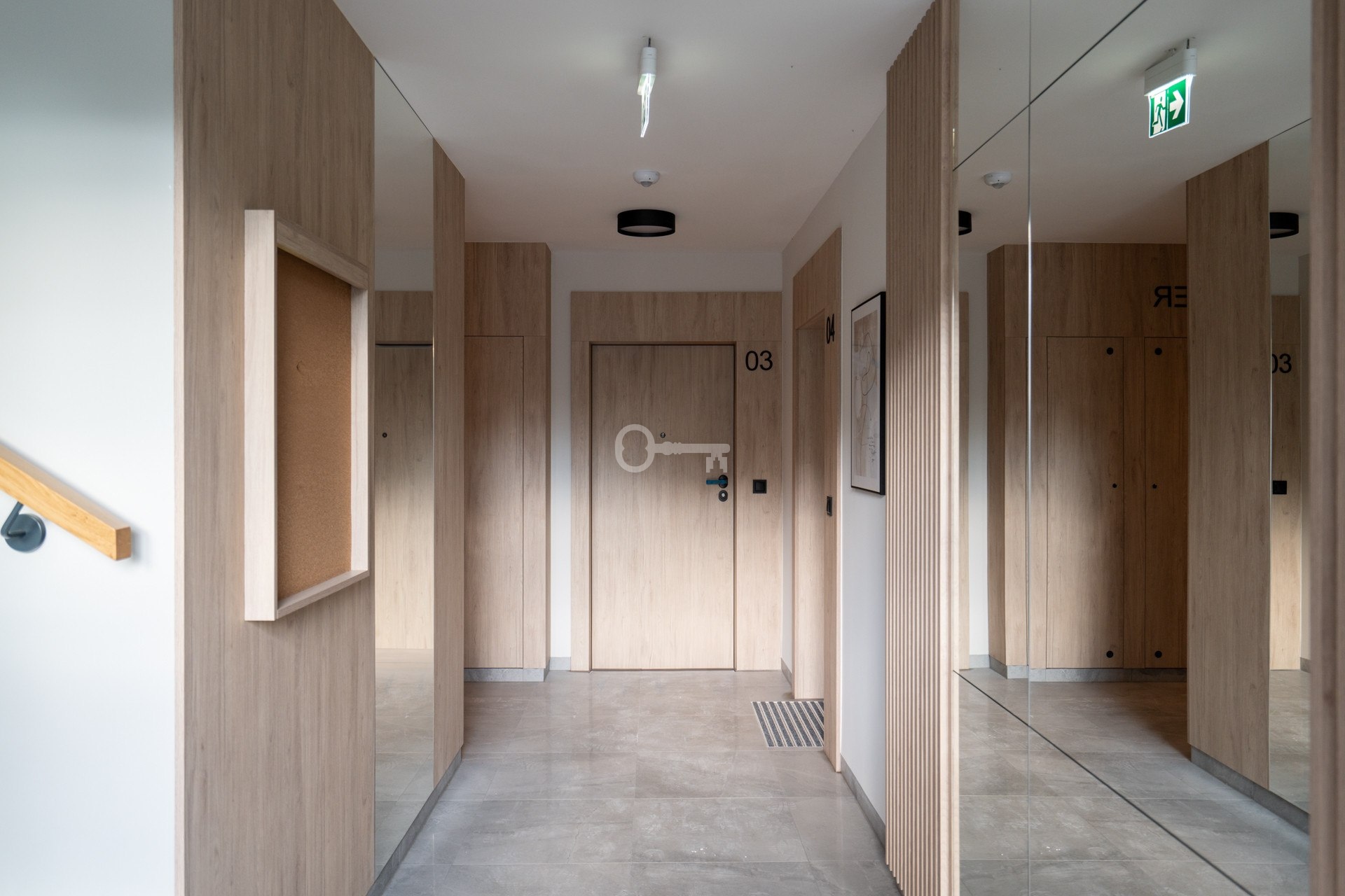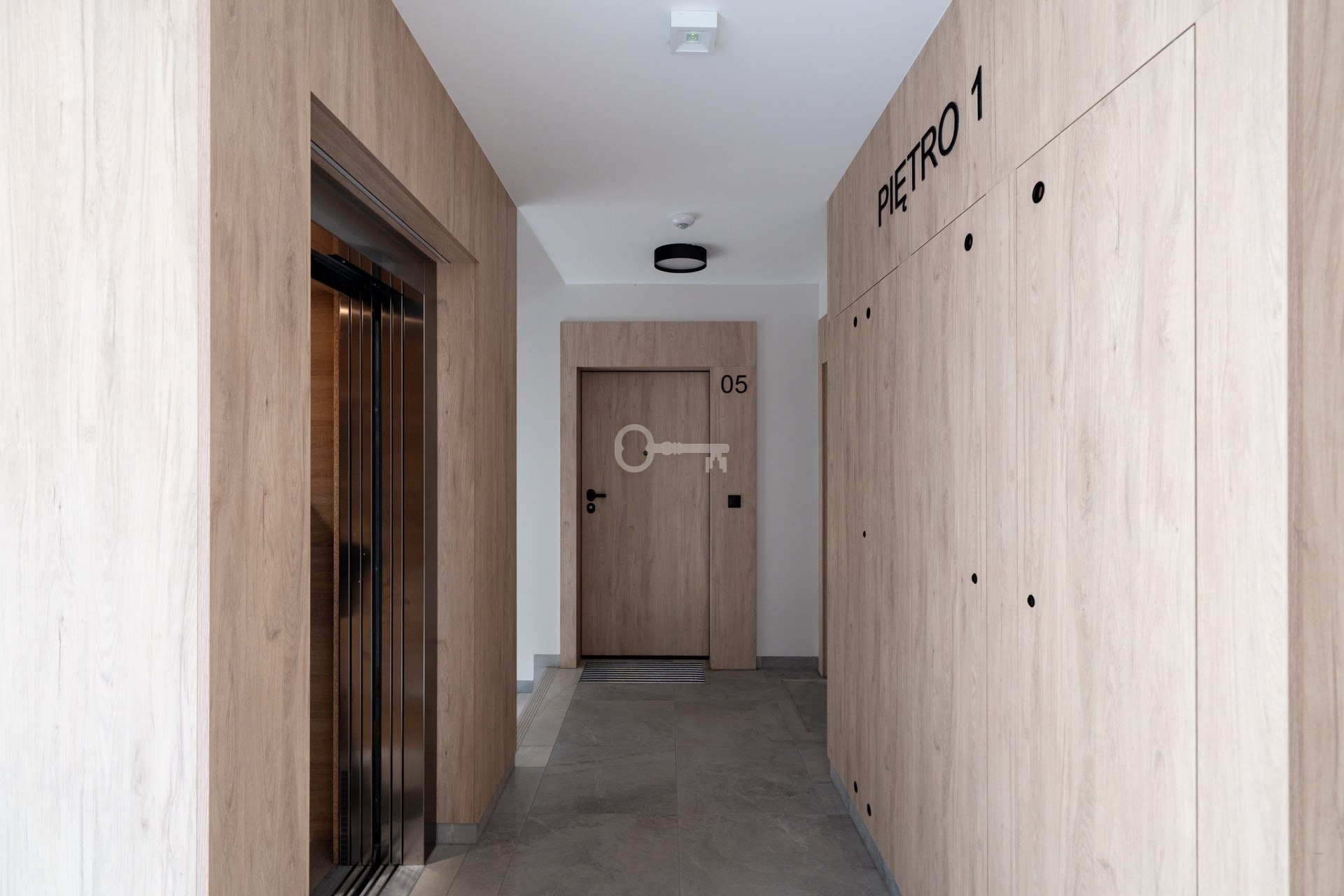 Building amenities: modern, quiet elevator with energy recovery, LED lighting, video intercom, TV and Internet installations. Low energy consumption thanks to triple-glazed windows, solid thermal insulation and modern technical solutions – realistically lower operating costs.