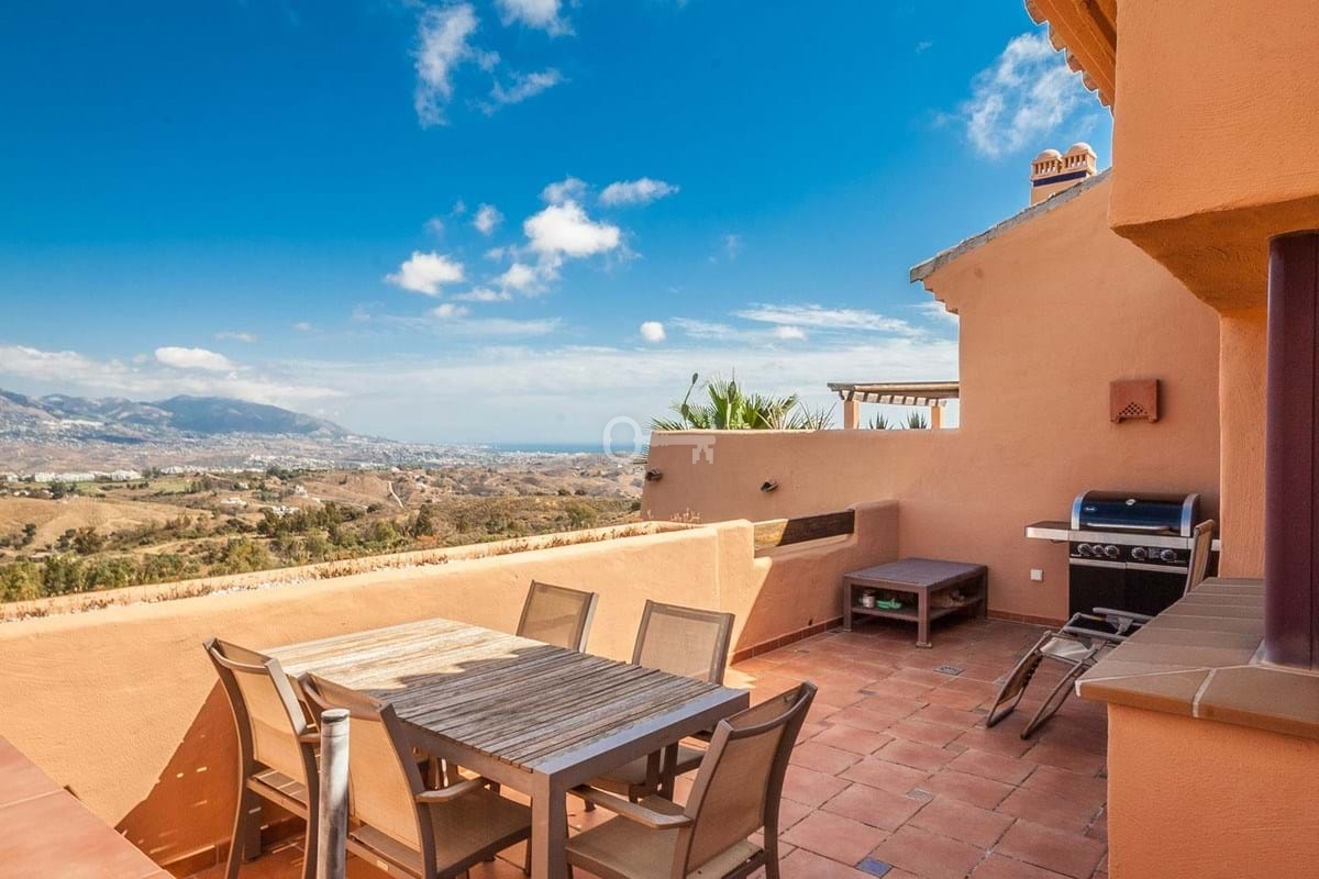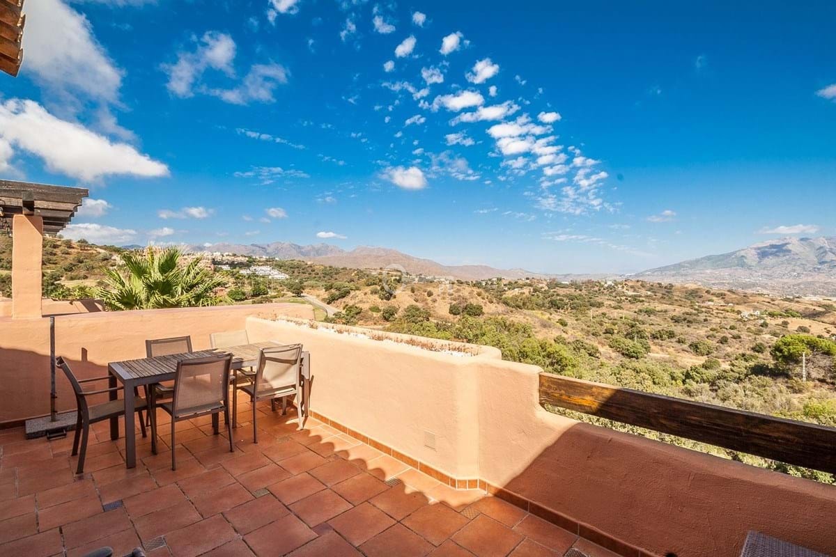Stunning Penthouse in La Mairena. Discover this beautiful three-bedroom, two-bathroom penthouse located in the tranquil hills of La Mairena. Designed for comfort and style, it features a fully fitted kitchen, private parking space, and a storage room for added convenience. The apartment offers 120 m² of built space complemented by an impressive 70 m² terrace, ideal for enjoying outdoor living and the amazing panoramic views of the mountains and the sea. Set within a fully gated community, residents can enjoy several swimming pools, beautifully maintained gardens, and a peaceful natural setting. Despite its quiet rural mountain location, the property is just a 10-minute drive from the coast, local shops, and restaurants. The nearby clubhouse offers additional lifestyle amenities, including a golf course, restaurant, and gym perfect for leisure and relaxation. This La Mairena penthouse combines the best of serene countryside living with easy access to the vibrant coastal life an ideal home or holiday retreat on the Costa del Sol.