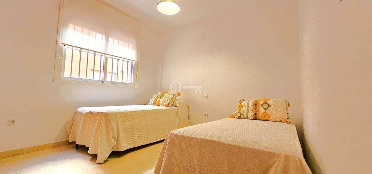 The gated community ensures security and privacy and features beautifully maintained communal gardens with lush vegetation, pleasant walking paths, and shaded areas all in a peaceful environment, ideal for families or for those seeking comfort, proximity to the sea, and quality of life. Among its amenities are communal swimming pools for adults and children, two paddle courts, and several playgrounds.
